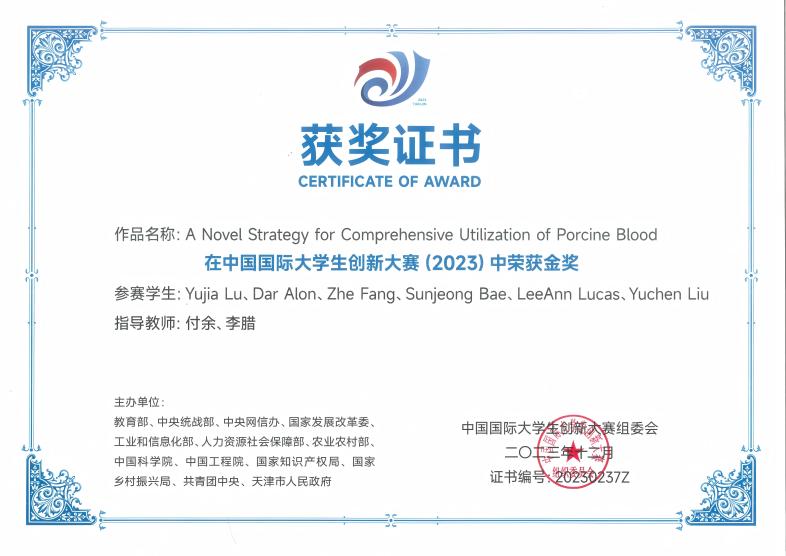 2023年12月,学院2020届毕业生校友在中国国际大学生创新大赛(2023)中荣获国际赛道金奖。