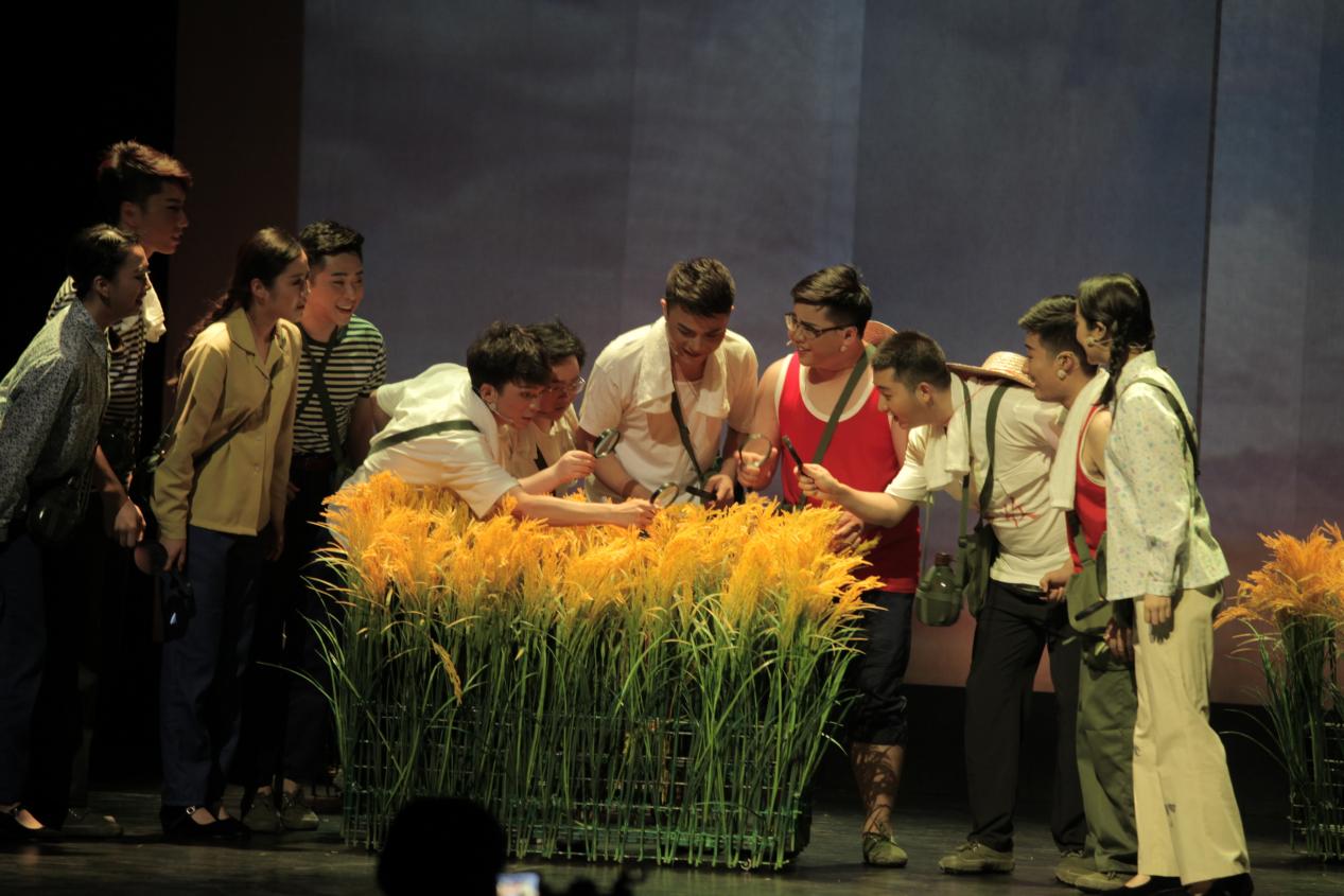 师生排演校园原创话剧《问稻》。