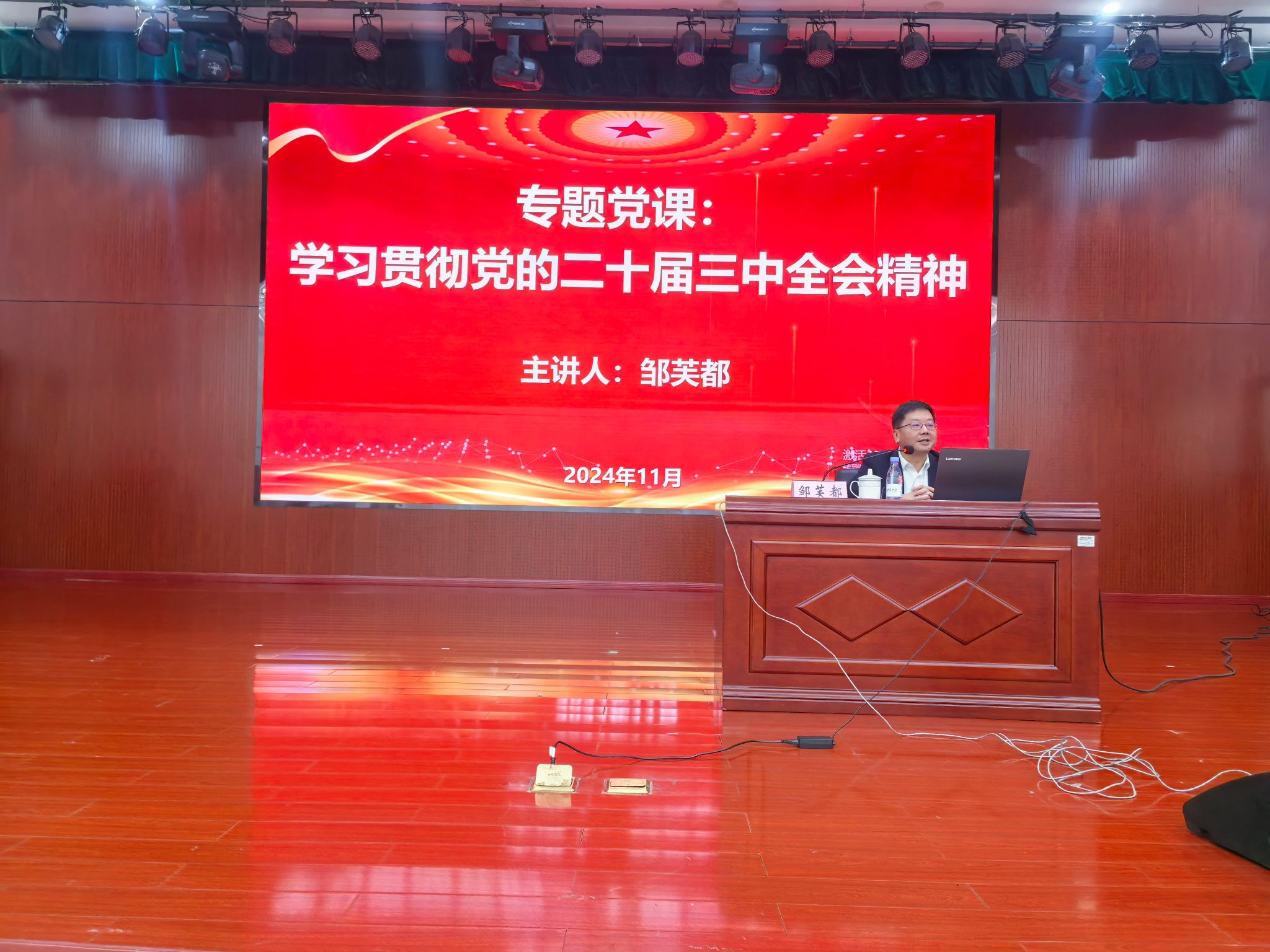 2024年11月,副校长邹芙都讲授专题党课。