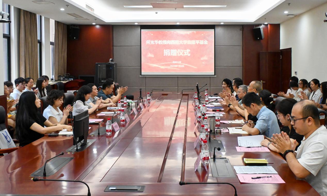 7月2日上午,何光华教授向贝博艾弗森代言体育官网袁隆平奖学金捐赠仪式在隆平楼举行。何光华教授,农学与生物科技学院领导班子全体成员及师生代表、学校教育基金会秘书长唐军参加仪式。仪式由农学与生物科技学院党委书记阳义健主持。