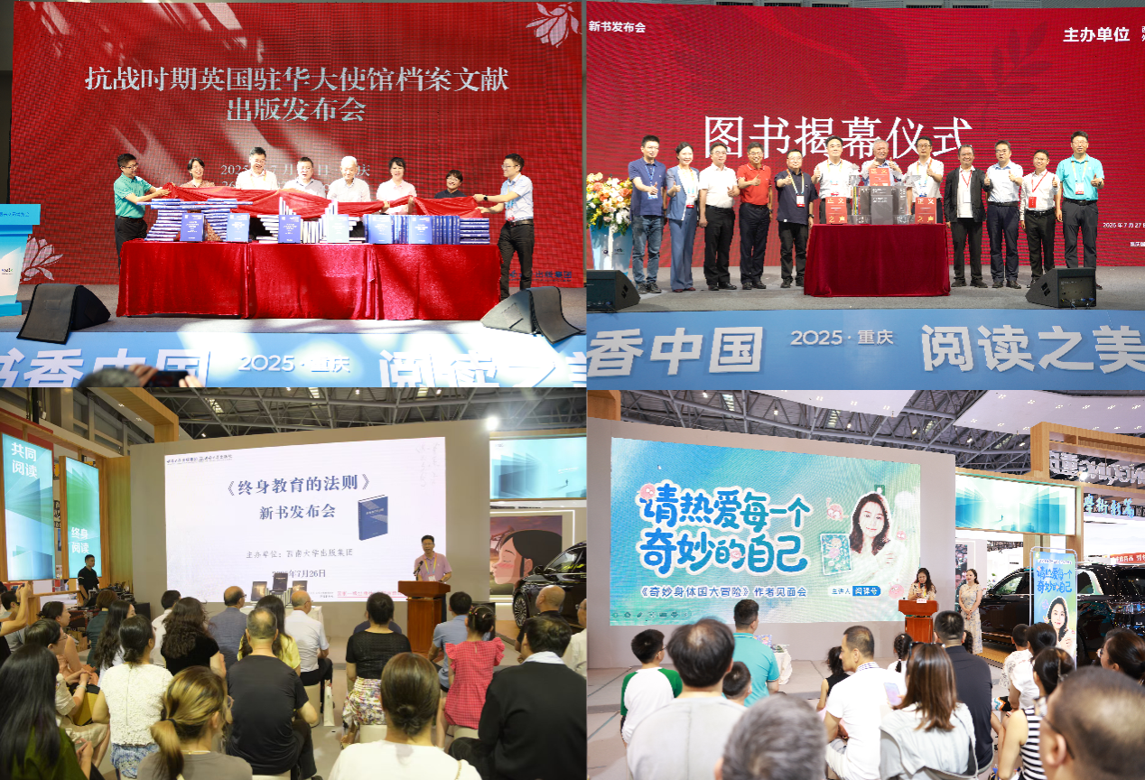 博览会期间,由出版集团精心组织的多场活动相继闪亮登场。《奇妙身体国大冒险》作者见面会与《终身教育的法则》新书发布会接连举办,作家与读者近距离交流创作心得;《抗战时期英国驻华大使馆档案文献》新书发布会在N4馆举行,进一步丰富了重庆在世界反法西斯战争研究中的文献体系;由天津音乐学院,学校中希文明互鉴中心、国际学院、出版集团,外文出版社联合推出的世界首部以6种语言讲述中国抗战故事的经典歌曲集《正义之声:中国反法西斯战争经典歌曲(多语种版)》新书发布会在中央大厅序厅舞台亮相,该书用音乐串联抗战历程,向世界传递中华民族的不屈精神。