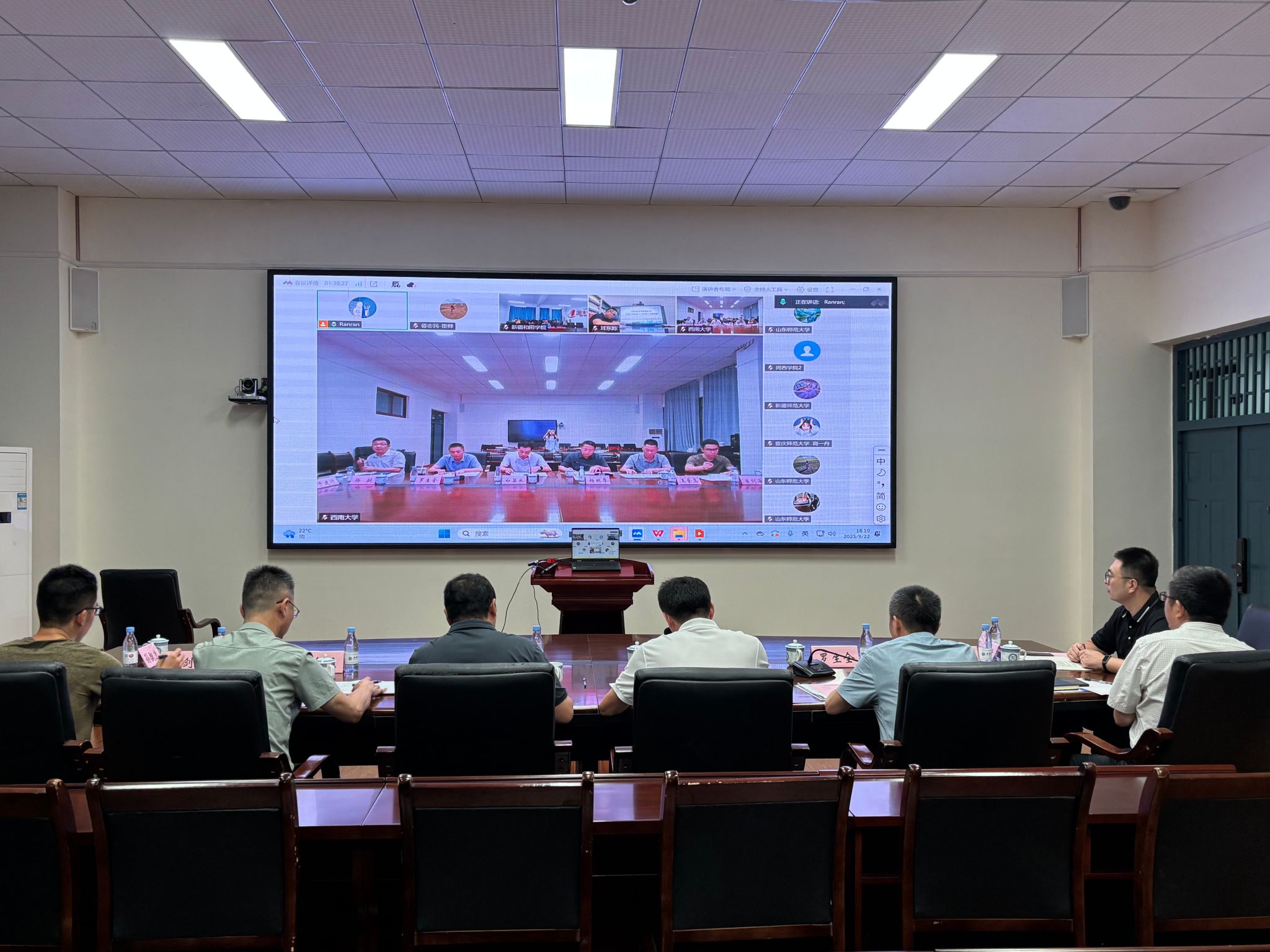 为进一步推动师范教育协同提质计划贝博艾弗森代言体育官网组团工作高效开展,9月22日,贝博艾弗森代言体育官网组团召开了工作联席会议。贝博艾弗森代言体育官网、新疆师范大学、山东师范大学、重庆师范大学、新疆和田学院、河西学院、长江师范学院相关校领导及有关职能部门负责人出席会议。社会服务处处长杨明厚主持会议。会议以线上线下相结合的方式举行。