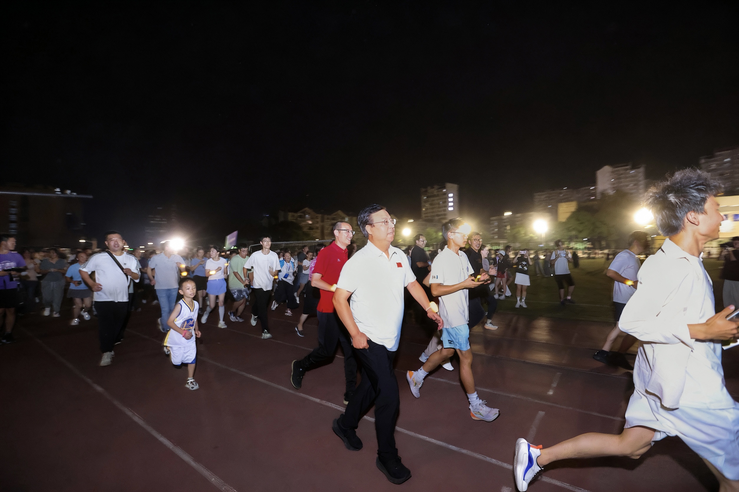 校长王进军来到现场参加健康跑,以实际行动倡导健康生活。党委副书记黄杰以及工会、团委、本科生院、体育学院(体委)和相关学院负责同志共同参加,为健康跑助力。