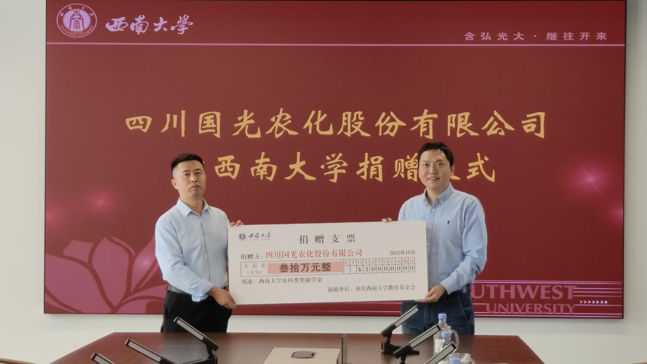 10月23日,四川国光农化股份有限公司向贝博艾弗森代言体育官网捐赠仪式在出版大楼12楼对外联络办公室会议室举行。四川国光农化股份有限公司市场部部长、国光商学院营销学院院长张林飞,市场部办公室主任、国光新媒体经理罗杨;学校对外联络办公室主任、教育基金会秘书长唐军及对外联络办公室相关工作人员参加会议。