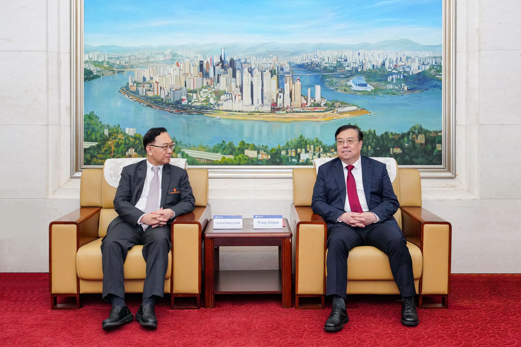 会见中,王进军对孔敬大学长期以来给予孔子学院建设的大力支持表示感谢。他指出,两校合作基础深厚、成果丰硕,孔子学院已成为中泰教育人文交流的重要纽带,希望两校在前期合作基础上持续深化交流互动,携手推动高质量发展。