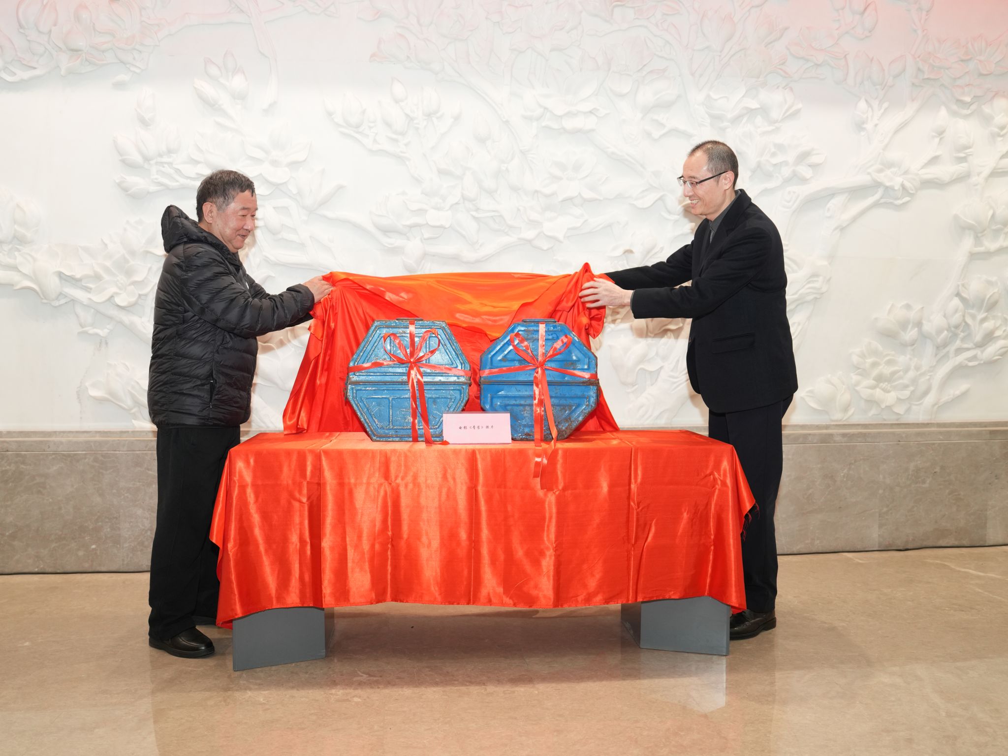 档案馆、校史馆、博物馆馆长吴艳东介绍捐赠背景,并代表馆方致辞,向余纪教授的慷慨捐赠表示感谢。在场师生共同观看余纪教授教学创作生涯短片。黄杰、余纪为捐赠品揭幕,吴艳东向余纪教授颁发捐赠证书,校史宣讲团学生代表向余教授献上鲜花,表示敬意。