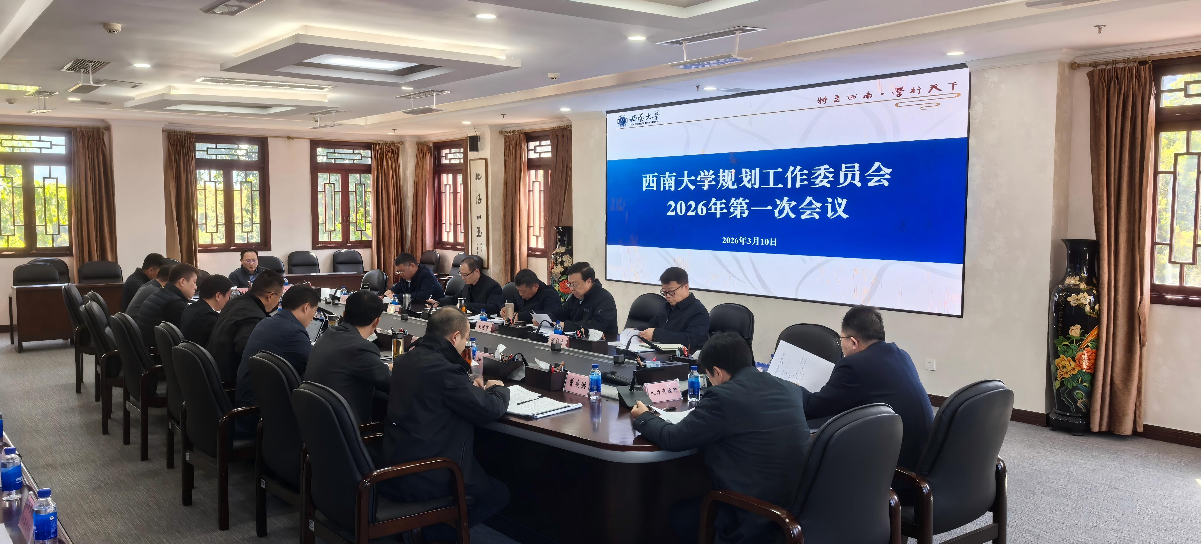 日前,学校规划工作委员会2026年第一次会议在行署楼A栋第五会议室召开。党委书记张卫国出席会议并讲话,校长王进军主持会议,全体在校校领导、党委常委出席会议,规划工作委员会成员单位相关负责人参加会议。