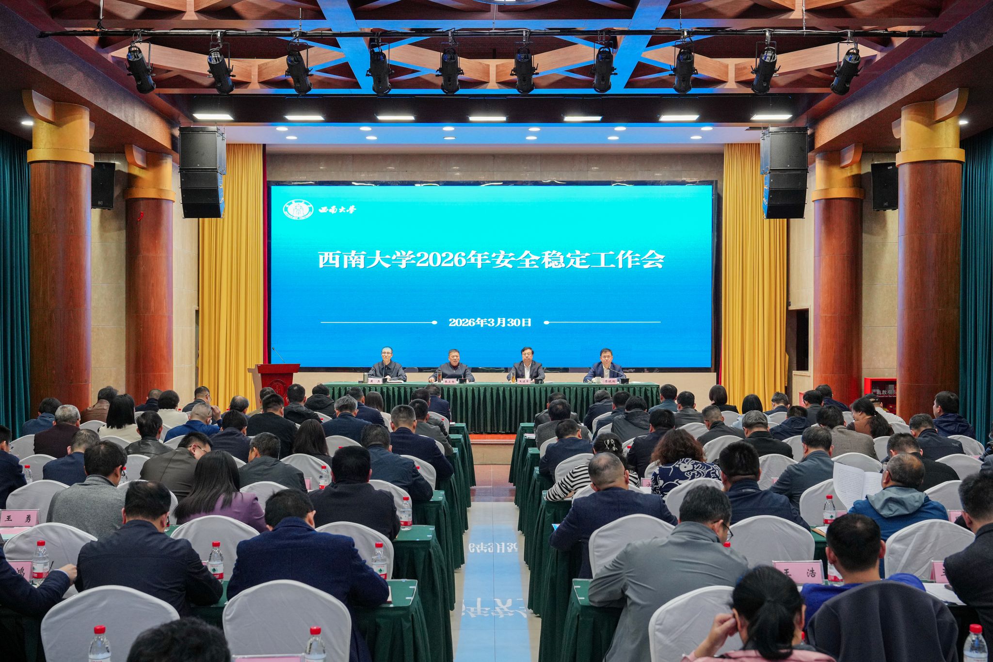 3月30日,学校召开2026年安全稳定工作会,分析当前校园安全稳定工作新形势,部署年度安全稳定重点任务。党委书记张卫国、校长王进军、党委副书记黄杰、副校长廖晓衡出席会议,会议由黄杰主持。