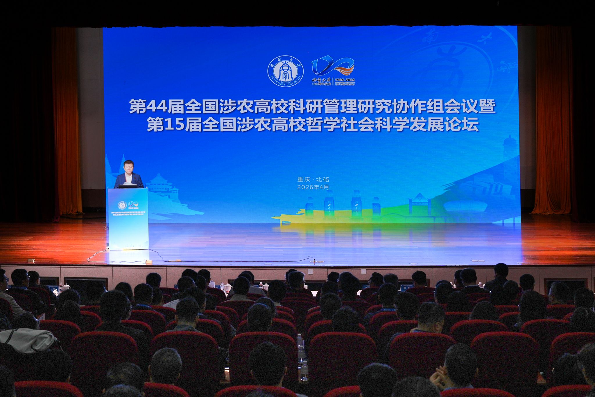 4月15日,第44届全国涉农高校科研管理研究协作组会议暨第15届全国涉农高校哲学社会科学发展论坛在学校启幕。会议以“回顾‘十四五’农业科研硕果,擘画‘十五五’科研创新蓝图”为主题,汇聚全国涉农高校、科研院所及企业智慧力量,总结过去、谋划未来。中国产学研合作促进会常务副会长、教育部科学技术与信息化司原司长雷朝滋,重庆市农业农村委员会副主任周松,学校校长王进军、副校长范大明等出席会议,来自全国50余家单位的200余位代表参加活动。