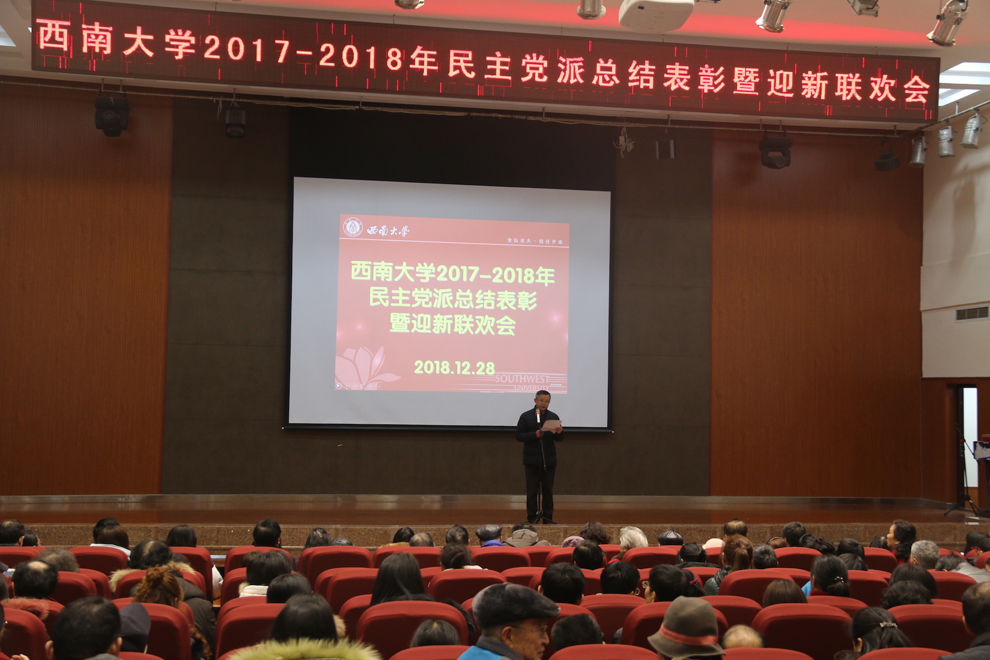 12月28日下午,在喜庆的气氛中,贝博艾弗森代言体育官网2017-2018年民主党派总结表彰暨迎新联欢会在学校圆顶活动中心拉开帷幕。活动由民盟贝博艾弗森代言体育官网基层委员会主委肖国强主持,党委统战部部长周文全应邀到会。