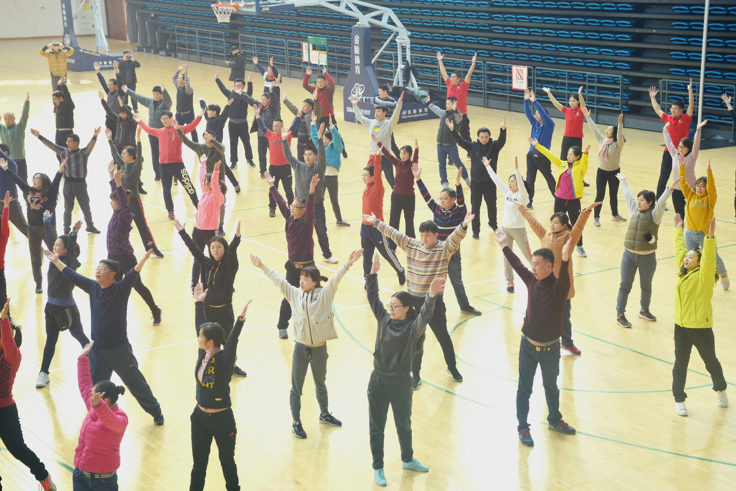 随后,在欢快的音乐节奏中,运动员们在领操员带领下进行热身活动,运动会比赛拉开序幕。本届运动会共设“定点投篮”“滚铁环” “集体跳绳”“欢乐毛毛虫”“第九套广播体操”5个比赛项目,并穿插了工会工作和校史校情知识抢答,运动会集趣味性、知识性和参与性于一体,激烈的比赛竞争转化为趣味性的有氧运动和脑力竞赛,参赛选手们大显身手,精彩纷呈,喝彩声不断。