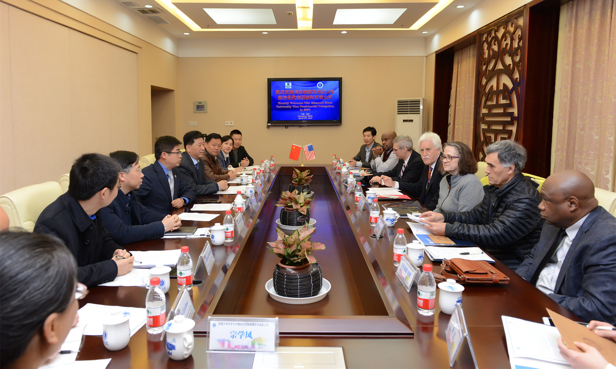3月13日至14日,美国密苏里州立大学主管国际事务的副校长詹姆斯·贝克(James Baker)、负责国际项目的布拉德•戈登豪森副校长等一行7人来访学校,学校副校长靳玉乐会见客人。