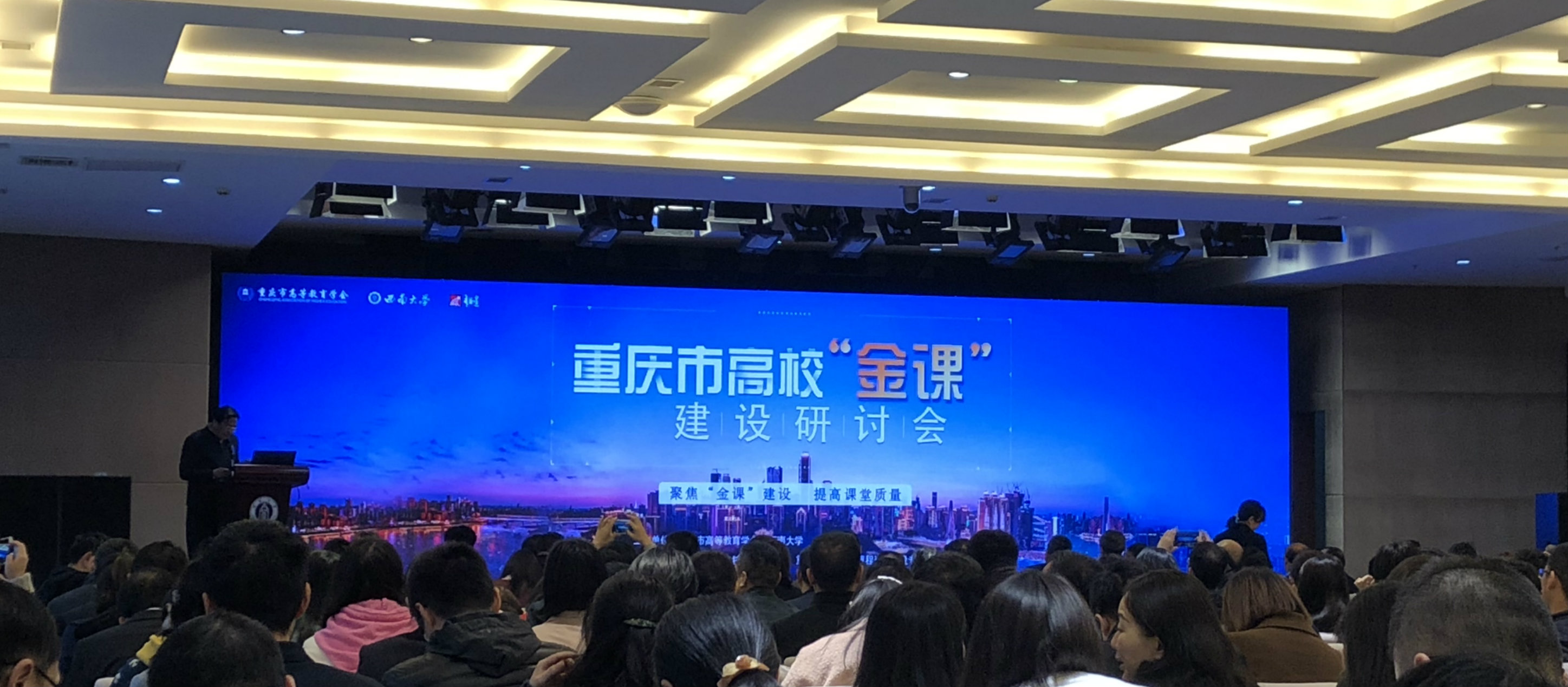 4月3日,重庆市高校“金课”建设研讨会在学校召开。此次会议由重庆市高等教育学会与贝博艾弗森代言体育官网联合主办,重庆超星信息技术有限公司与重庆市高等教育学会课程资源建设专委会协办。重庆市教育委员会、重庆市高等教育学会领导,以及来自重庆大学、西南政法大学、重庆医科大学、重庆师范大学、四川外国语大学等64所高校的校领导、教务处处长和教师代表共400余人参加会议。