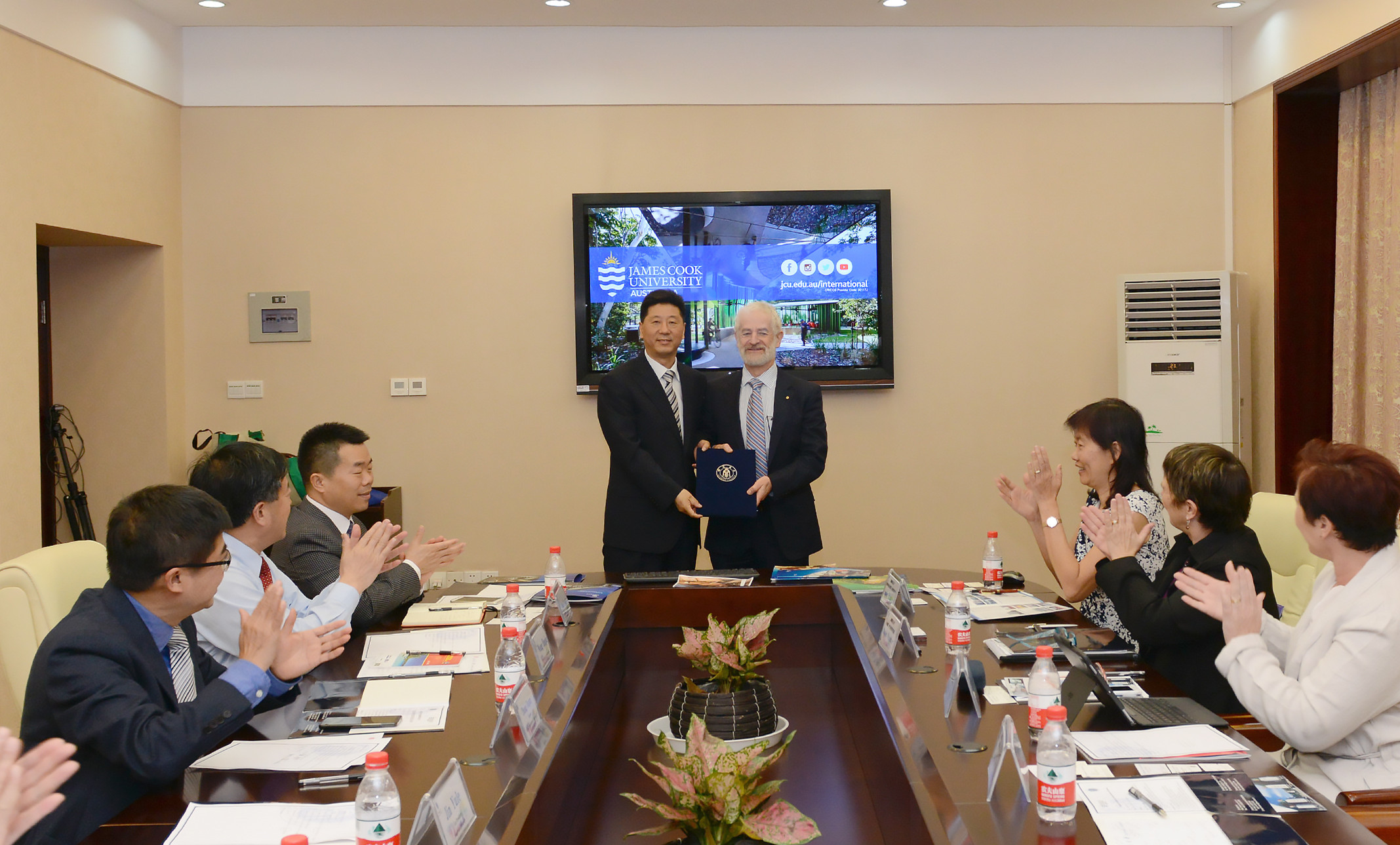 9日下午,校长张卫国会见来访客人,对詹姆斯库克大学代表团表示了热烈欢迎并简要介绍了学校办学规模、学科特色、国际实验室建设等情况。