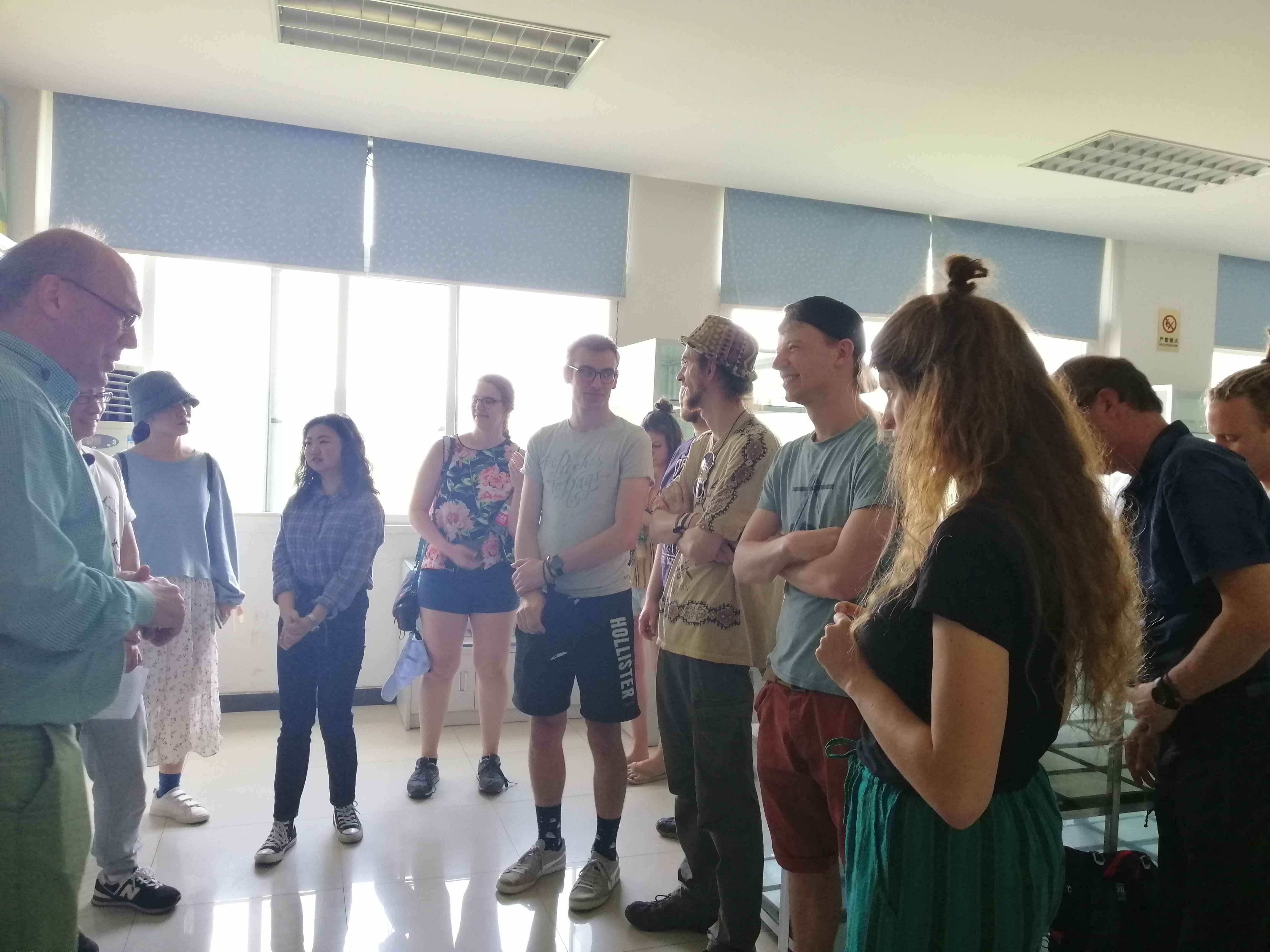 访学团参观了柑桔研究所国家柑桔工程技术研究中心展示厅、中试加工车间、柑桔品种标本馆和柑桔病虫标本馆。在工程中心展示厅,讲解团庞雯辉和祁静静同学从柑桔研究所所情所貌、中心简介、发展历程、技术创新等七大板块,详细讲解了柑桔研究所历年的科研成果和发展历程;在第二站加工中试车间,周琦和冯雨同学为比利时师生介绍了NFC橙汁的生产全过程及相关设备,并回答了参观师生的提问。