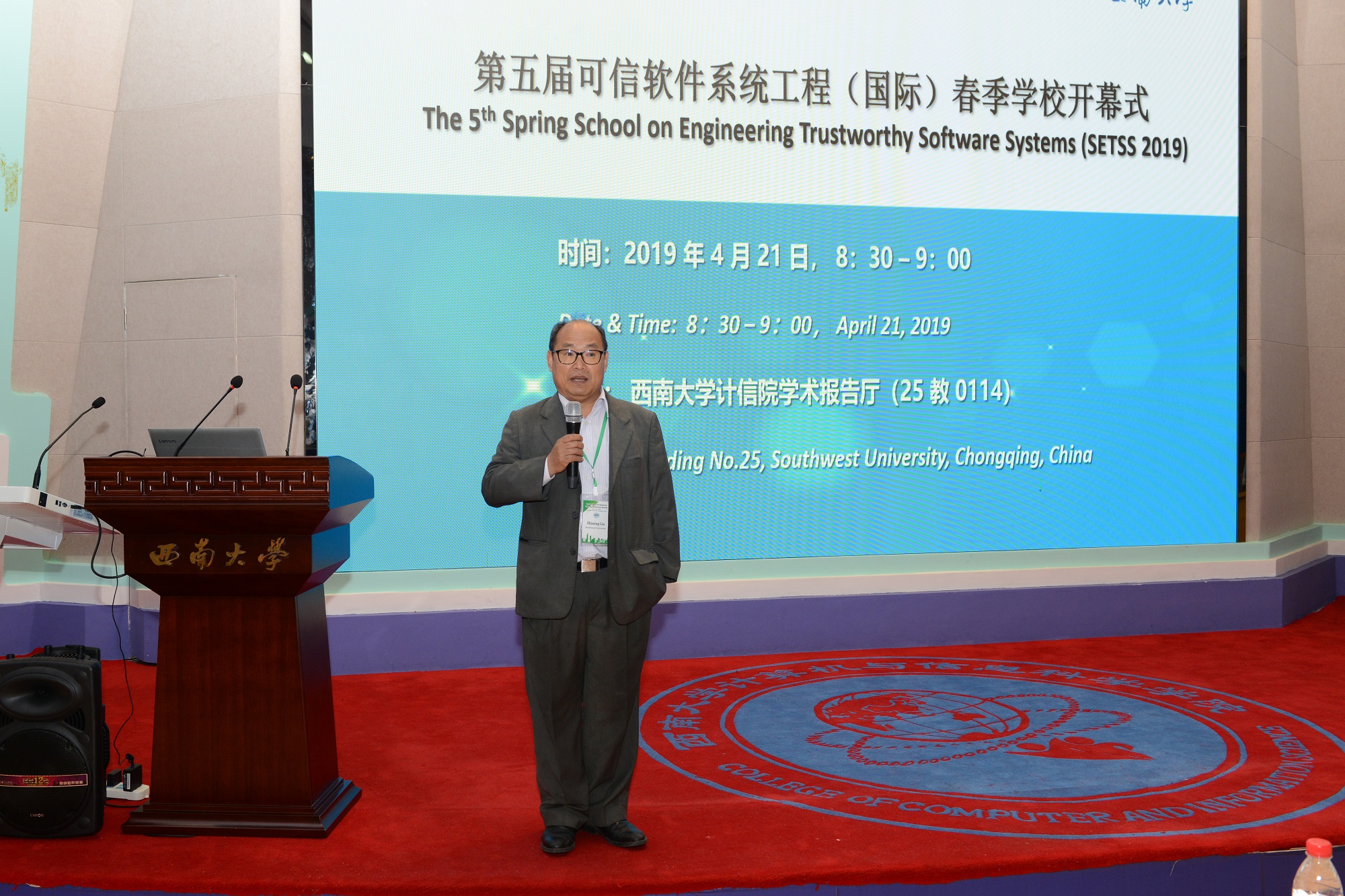 2019年第五届贝博艾弗森代言体育官网可信软件系统工程(国际)春季学校(SETSS 2019)于4月21日正式拉开帷幕。学校副校长崔延强出席开幕式并致欢迎辞。受邀的软件工程领域国际专家,及来自全国各大高校和科研院所的90余位学员参加了开幕式。开幕式由国家“千人计划”专家、学校软件研究与创新中心(RISE)主任刘志明教授主持。计算机与信息科学学院/软件学院党委书记靳拥军,院长肖国强,副书记刘作勋,外聘专家Shmuel Tyszberowicz教授参加开幕式