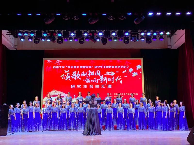 本次合唱汇演以贝博艾弗森代言体育官网“红研西大 爱我中华”研究生主题教育活动为主线,旨在通过讴歌经典,营造爱国进步、积极向上、健康文明的校园文化氛围,展现我校研究生同心奋进、共筑中国梦的崭新面貌,唱响立德树人的主旋律,鸣响改革发展的主题曲,奏响协同育人的交响乐,用“中国梦”激扬“青春梦”,以新时代理想信念续写青春乐章。