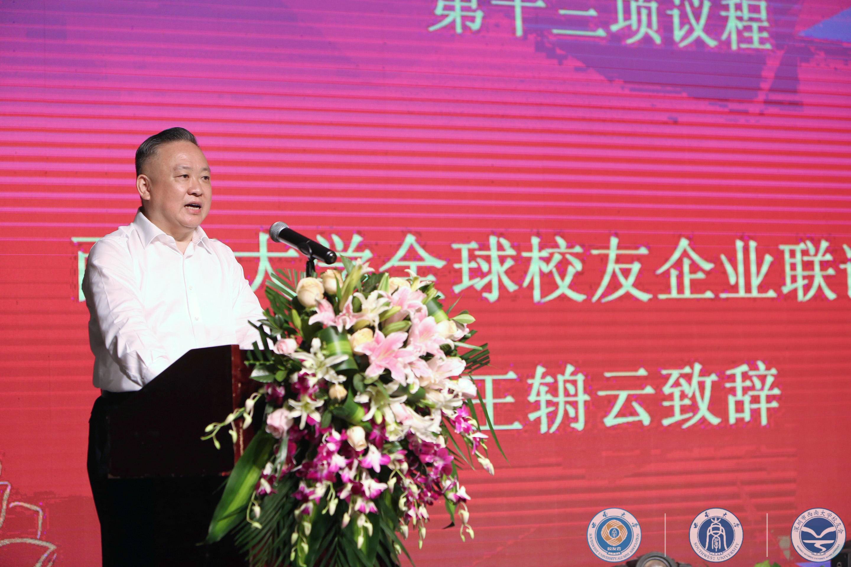 4月27日上午,学校第二届校友工作会暨全球校友企业联谊会(以下简称“西大企联”)成立大会在深圳召开。学校校长、校友总会会长张卫国,校友总会副会长、贝博艾弗森代言体育官网原副校长丁忠民,党委常委罗朝明,校长办公室主任葛信勇,对外联络部部长、校友总会秘书长龚常智,北碚区委常委董伦等相关领导出席会议,来自海内外的50余校友组织的会长、秘书长代表、校友企业代表以及学校培训学院、校地合作处、创新创业学院、资产经营有限公司等相关职能部门代表160余人参加会议。大会由丁忠民副会长主持。