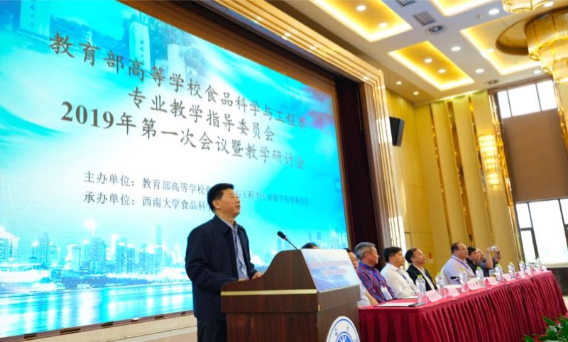 5月11日,教育部高等学校食品科学与工程类专业教学指导委员会2019年第一次会议暨教学研讨会在重庆海宇酒店召开。会议由教育部高等学校食品科学与工程类专业教学指导委员会(以下简称食品专业教指委)主办,贝博艾弗森代言体育官网食品科学学院承办。食品专业教指委委员及来自全国165个单位的500多名领导及老师参加了会议。会议由赵国华教授主持。靳玉乐副校长致欢迎辞。