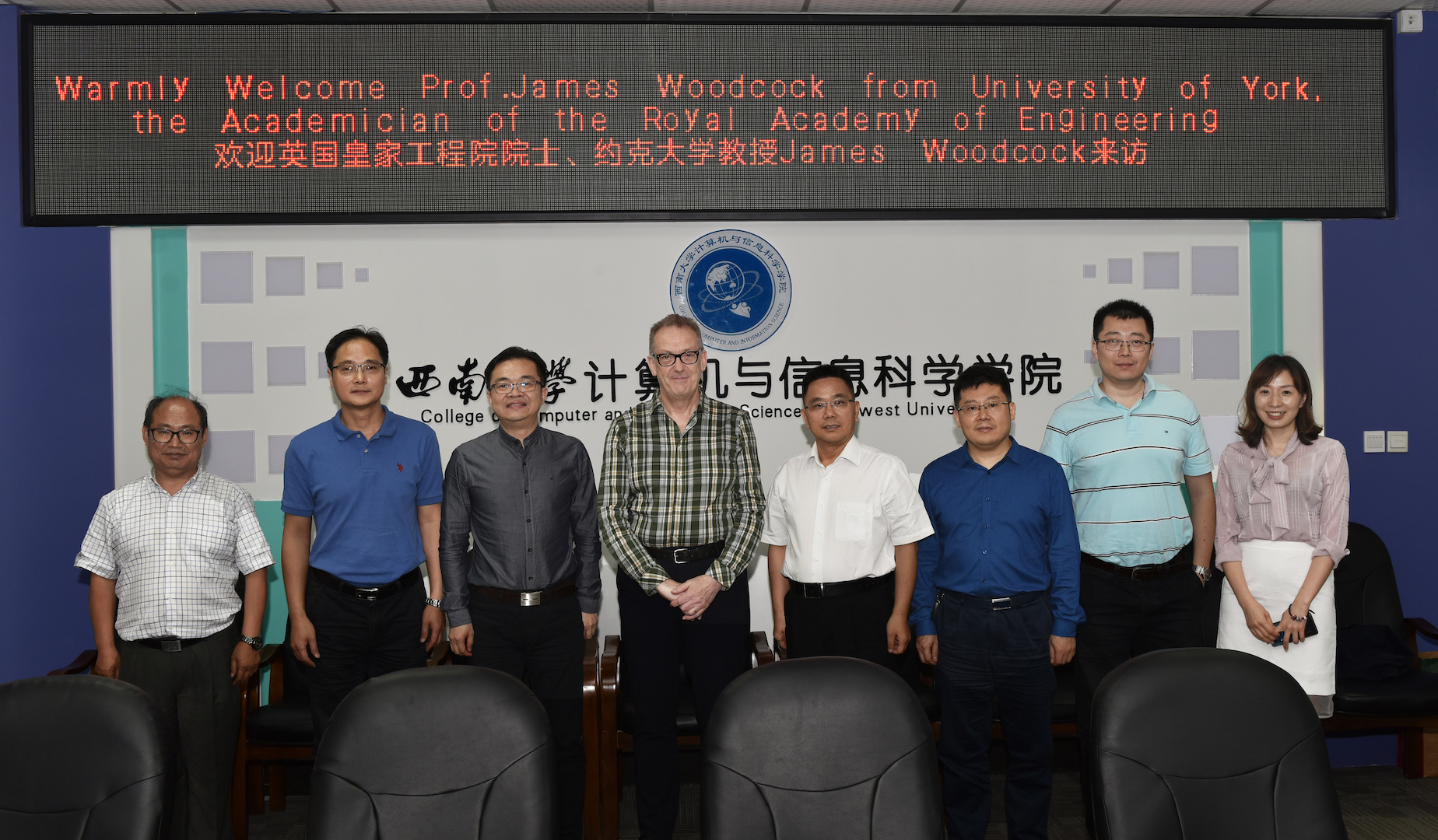 5月12日-5月18日,英国皇家工程院院士、约克大学James Woodcock教授来校访问。5月16日下午,副校长陈时见带领人事处、计算机与信息科学学院/软件学院等相关单位负责人与James Woodcock教授交流座谈。座谈会由计算机与信息科学学院/软件学院院长肖国强主持。