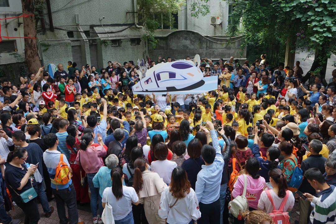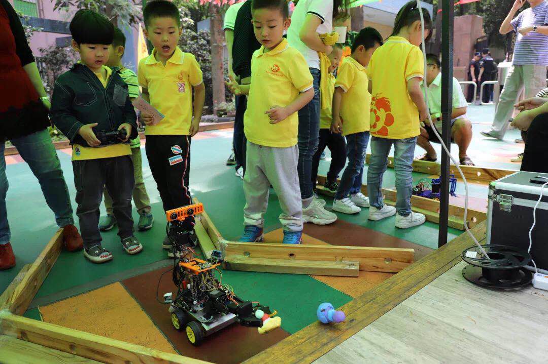 在活动中的“快闪”时刻,学校校长助理周光明携学校有关部门负责人来园看望孩子们,为孩子们送上了节日祝福。在机器人“小胖”对现代科技的描绘中,孩子们欣赏了中国深度“蛟龙号”、中国高度“航天飞行器”和中国速度“高铁”的造型。在节奏明快的机器人舞蹈、欢快的儿童节歌曲和优美的园歌表演中,大家尽情舞动,享受嬉游之乐。
