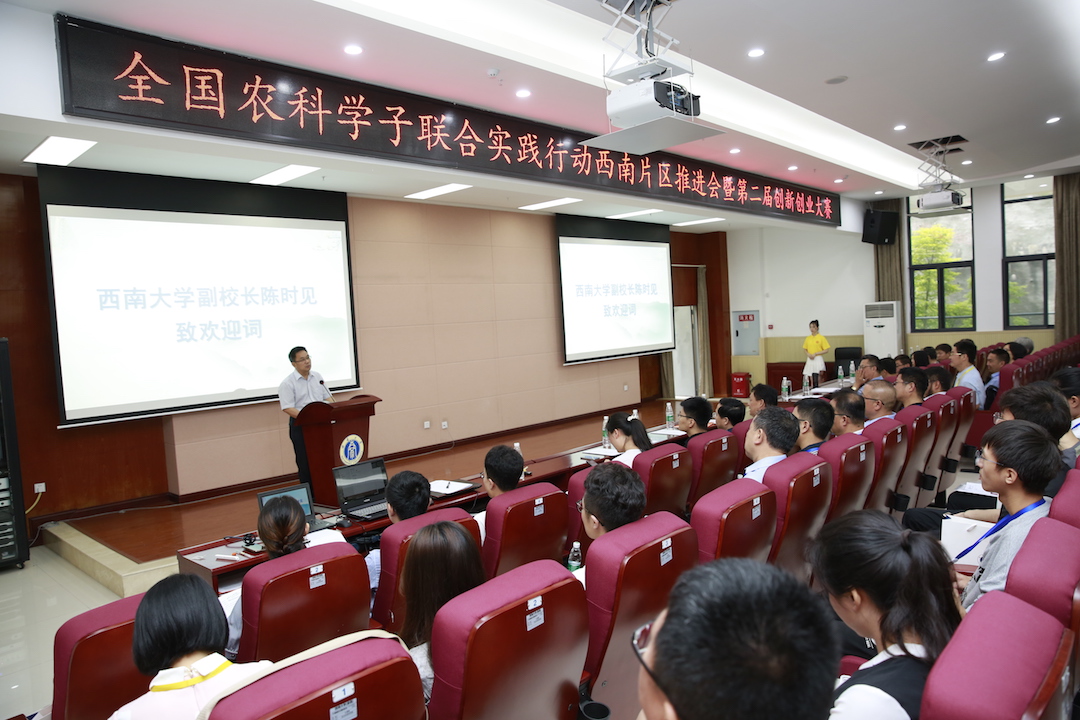 6月6日,2019年全国农科学子联合实践行动西南片区推进会暨第二届创新创业大赛在学校隆平楼举行。四川农业大学、云南大学、贵州大学、云南农业大学等10所西南片区农科院校的百余名师生齐聚贝博艾弗森代言体育官网。深圳诺普信农业股份有限公司和重庆诺鼎科技有限公司负责人,贝博艾弗森代言体育官网副校长陈时见,相关职能部门及学院负责人出席会议。农学与生物科技学院党委副书记方凤玲主持会议。