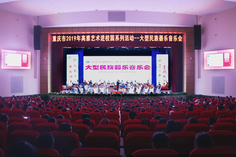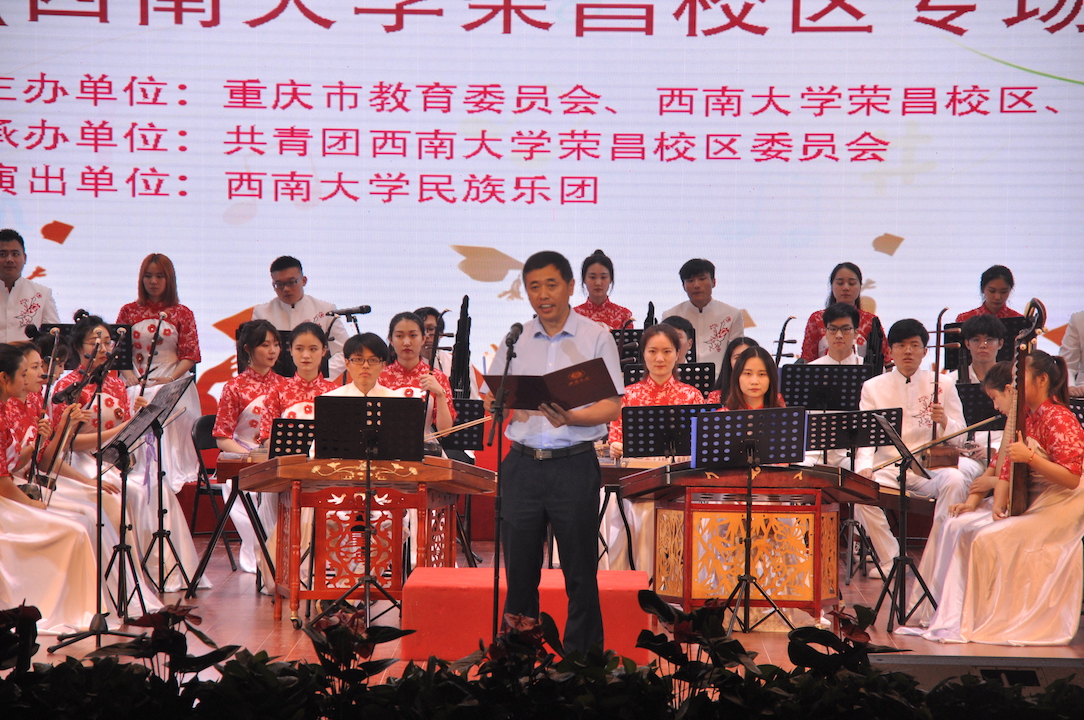 6月6日,由重庆市教育委员会、荣昌校区和学校音乐学院主办,荣昌校区团委承办,贝博艾弗森代言体育官网民族乐团演出的高雅艺术进校园活动之大型民族器乐音乐会在荣昌校区新建活动中心上演。学校党委副书记潘洵、重庆市荣昌区文联、学校党办、校办、宣传部、学工部、团委、基建处、荣昌校区党工委、荣昌校区管委会、音乐学院、动物科学学院、商贸学院、荣昌校区基础部和荣昌校区有关职能部门负责人与1100余名师生共同观看了演出。
