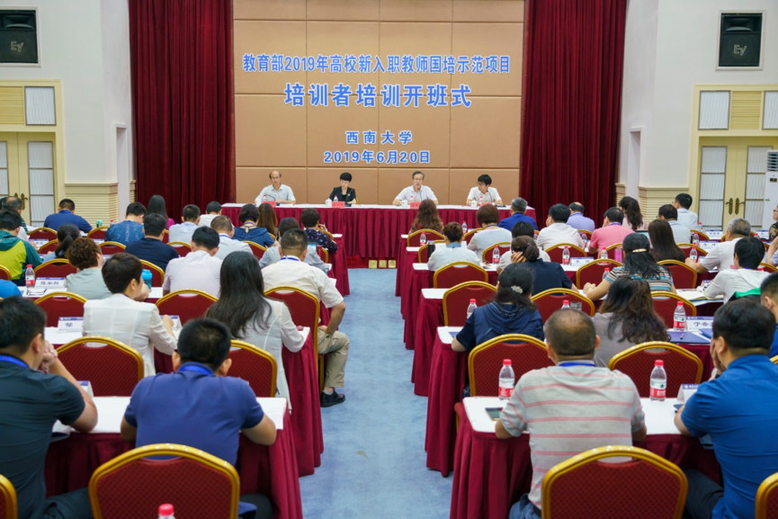 6月20日上午,由教育部教师工作司主办、贝博艾弗森代言体育官网(教育部西南高等学校师资培训中心)承办的2019年高校新入职教师国培示范项目培训者培训开班式在学校桂园宾馆举行。学校党委副书记安春元,重庆市委教育工委委员、总会计师郭小萍,北京师范大学继续教育与教师培训学院副院长、教育部高校师资培训交流北京中心副主任罗容海出席开班式。
