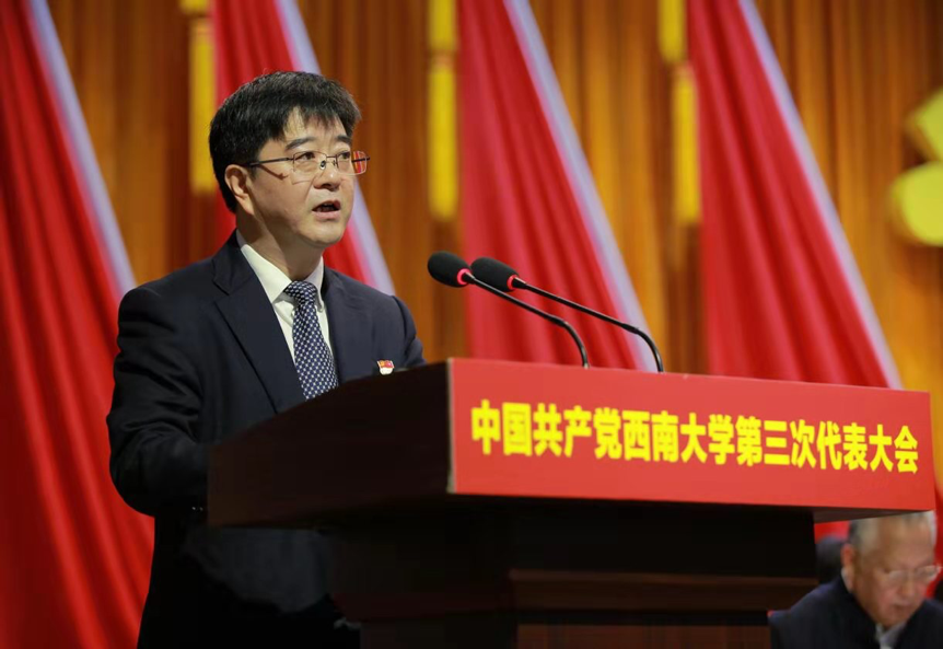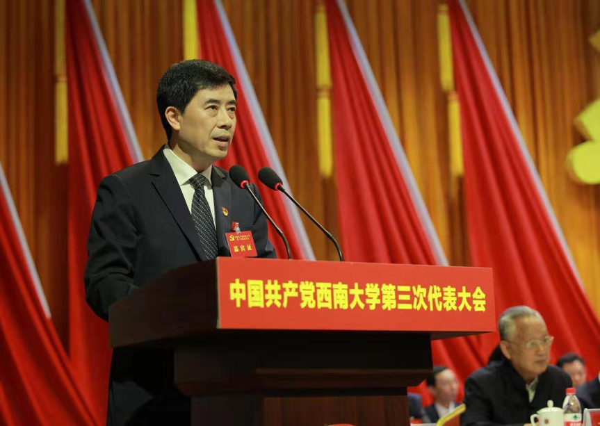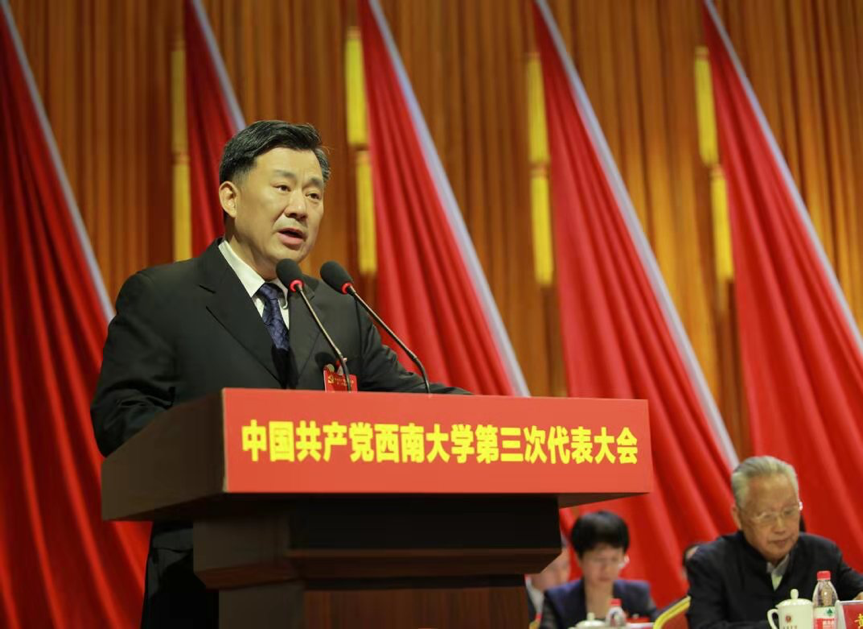 舒立春同志在讲话中指出,这次大会是学校政治生活的大事,是一次承上启下的会议。舒立春同志对贝博艾弗森代言体育官网自第二次党代会以来党的建设和思想政治工作及学校各项事业取得的显著成绩给予充分肯定,认为贝博艾弗森代言体育官网为重庆地方经济和教育事业发展作出了积极贡献。对即将产生的贝博艾弗森代言体育官网新一届党委提出了三点希望:一是坚定政治方向,切实加强党的全面领导;二是坚守育人初心,不断提升人才培养质量;三是坚持内涵发展,加快推进“双一流”建设。