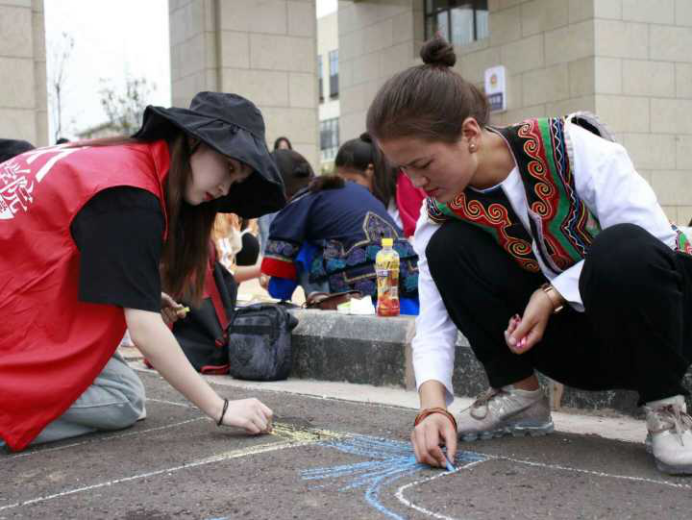 这是美术学院文化艺术服务团15名师生和200名幼师美术专业、学前教育专业、小学教育专业学生共同绘制的杰作。学校美术学院退休教师、曾自驾走完红军长征路的著名红色写生艺术家刘增宪教授带领该校美术专业13名大学生,组成“艺术关爱凉山行”暑期“三下乡”文化艺术服务团,来到贝博艾弗森代言体育官网对口帮扶的西昌幼儿高等师范专科学校,开展“大手牵小手”儿童美术教育等实践活动。13名大学生分散到西昌民族幼专四个班级,开展为期3天的水彩技法、速写、现代舞和现代摄影艺术基础四门课程教学,以轮班教学形式,让该校4个班级近200名学生比较迅速地掌握四种艺术基本常识和技巧。