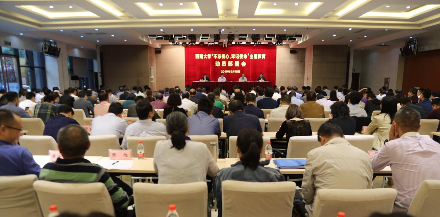 今年5月,党中央召开了“不忘初心、牢记使命”主题教育工作会议,习近平总书记发表重要讲话。9月7日,党中央召开“不忘初心、牢记使命”主题教育第一批总结暨第二批部署会议,对第二批主题教育提出了明确要求。9月9日,教育部党组召开了第二批主题教育工作部署会议,教育部党组书记、部长陈宝生在会上对主题教育工作进行了安排部署,提出了明确要求。同时,部党组还组成了巡回指导组对相关高校的主题教育进行全程指导。学校党委提前谋划,组织校领导参加2019年重庆高校领导干部暑期读书班,举办党委理论学习中心组成员“不忘初心、牢记使命”暑期专题读书班,举办处级干部“不忘初心、牢记使命”党性教育研修班,认真研究制定学校主题教育实施方案,为开展好主题教育奠定了坚实的思想基础。