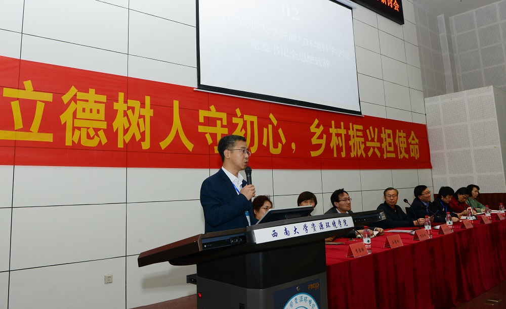 南京农业大学资源与环境科学学院党委书记全思懋代表理事单位致辞,指出面对新时代对农林类人才的要求,提高人才培养质量是大学的根本任务,期待本次会议聚焦研讨人才培养的路径。