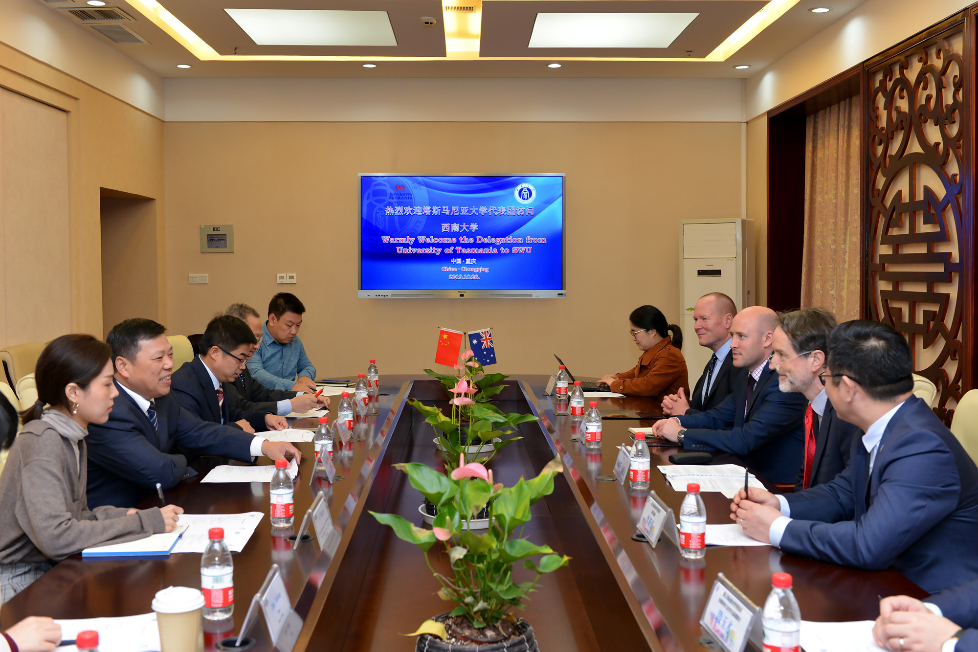 张校长欢迎布莱克校长一行访问学校,表示学校非常重视与塔斯马尼亚大学已经建立的良好合作关系。学校西塔学院的建立为双方进一步合作奠定了坚实的基础,接下来将把双方合作向教师交流、高层次人才培养、科研合作、实验室共建方面拓展。