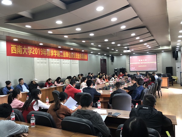 为进一步贯彻落实教育部,重庆市教委和学校实验室安全相关工作要求,提升二级单位实验室安全管理水平,提高安全员业务工作水平,10月30日下午,学校在文俊楼三楼会议室举办2019年秋季学期二级单位安全员业务培训会。学校实验室安全巡检小组专家、25个自然科学类、16个人文社会科学类二级单位和荣昌校区47名安全员参加培训。