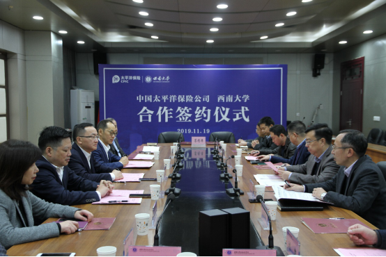11月19日下午,学校与中国太平洋保险(集团)有限公司举行合作签约仪式。中国太平洋保险集团副总裁赵永刚、学校副校长王进军出席签约仪式。学校相关职能部门负责人,太保集团有关负责人参加签约仪式。仪式由校地合作处处长程龙主持。