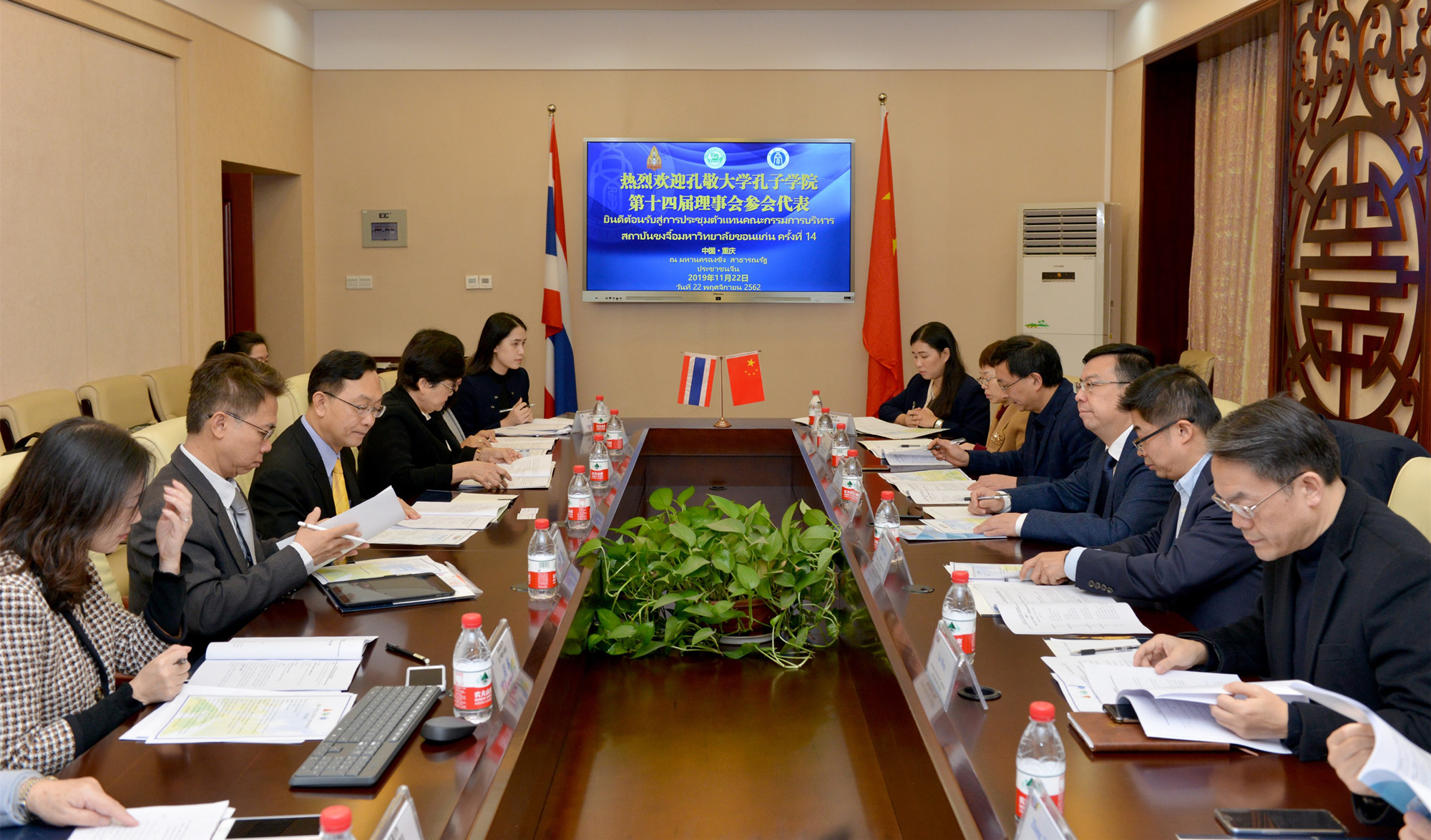 11月22日,泰国孔敬大学孔子学院第十四届理事会在校召开,学校副校长王进军出席并致辞,国际合作与交流处、人事处、财务处、国际学院、文学院等相关单位负责人,孔敬大学代理校长常才、副校长密楚、教育学院院长苏玛丽、人文学院副院长查乐蒙及孔敬孔院泰方院长陈海楠、中方院长胡琳等参加会议。