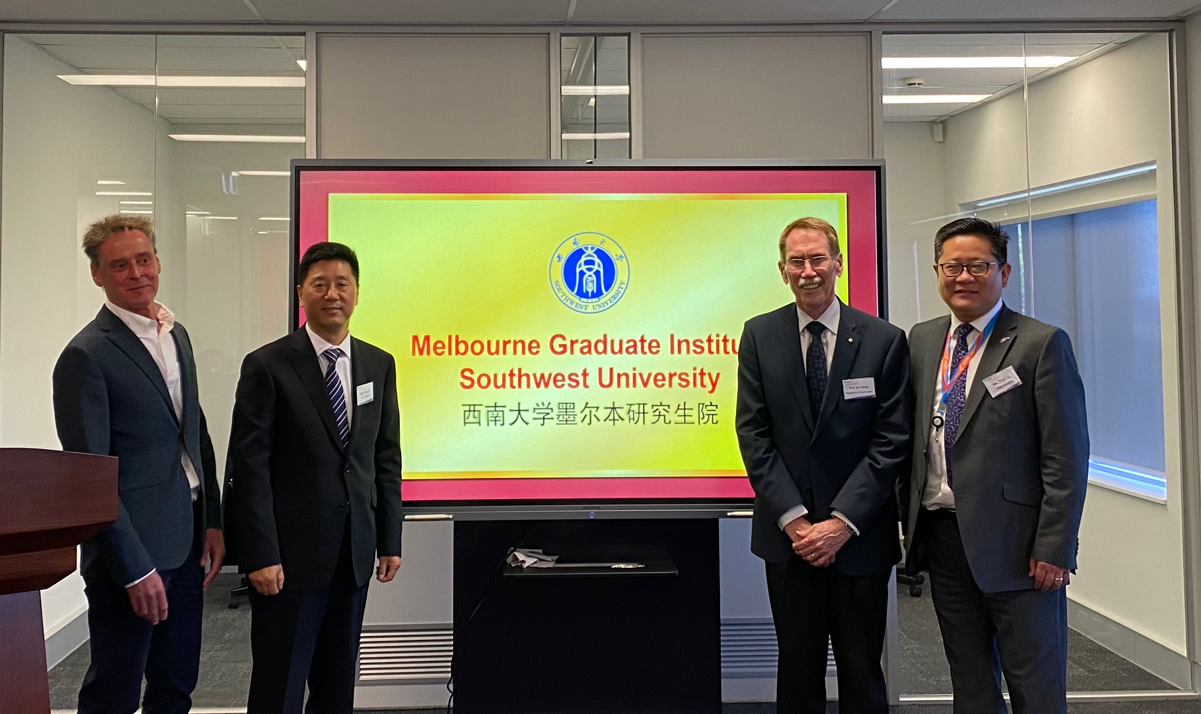 12月12日,贝博艾弗森代言体育官网墨尔本研究生院(Melbourne Graduate Institute,简称MGI)揭牌仪式在澳大利亚教育管理集团(AEMG)举行。学校副校长靳玉乐、AEMG总裁李新庆等相关负责人、前澳大利亚国立大学校长Ian Young、弗林德斯大学副校长Mike Kyrios、塔斯马尼亚大学常务副校长Rob Wilson、悉尼科技大学创新数字中心创始人周万雷等40余位中澳知名院校专家教授、业界代表齐聚一堂,一同见证了学校教育国际化的又一里程碑。