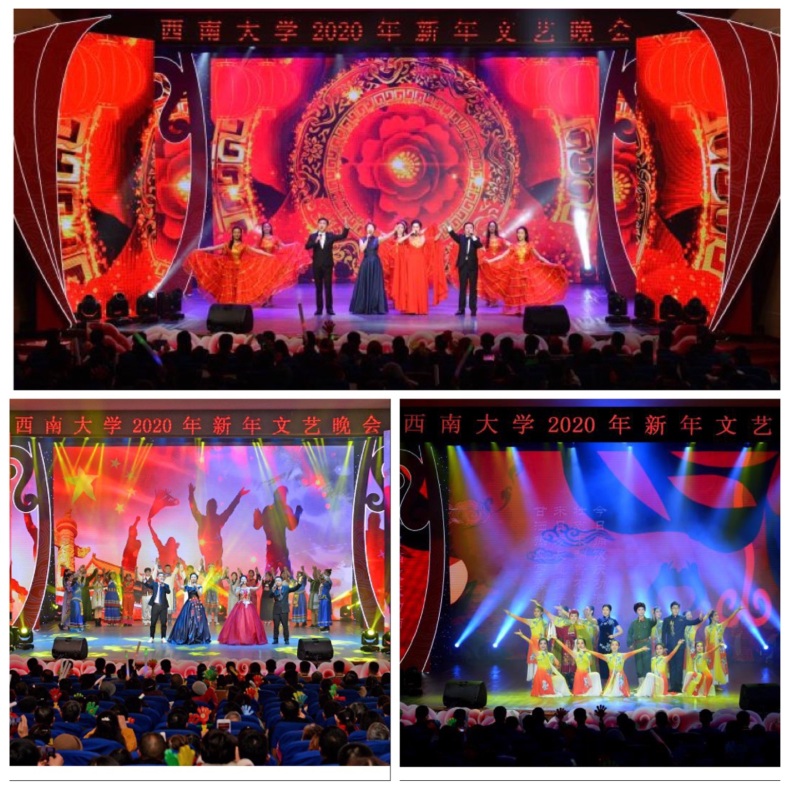 音乐学院师生歌舞《奋进之春》,踩着奋进的鼓点和追梦的步伐拉开了晚会序幕,展现了西大人的昂扬斗志。伴随开场歌舞渲染的欢快氛围,李旭锋书记,张卫国校长献上新年祝福,袁隆平、李丹阳等来自全球各地西大校友的新年祝福令全场观众心潮澎湃。晚会播放的《不忘初心,砥砺奋进——贝博艾弗森代言体育官网2019年党的建设与事业发展回眸》专题片回顾了学校在党建工作、人才培养、学科科研、社会服务、国际化办学、校园文化、基础建设等多方面取得的喜人成绩。