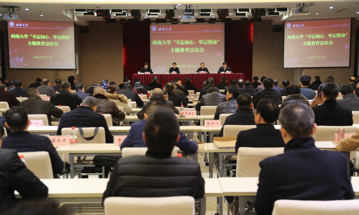 为深入学习贯彻习近平总书记在“不忘初心、牢记使命”主题教育总结大会上的重要讲话精神,根据中央、教育部党组关于“不忘初心、牢记使命”主题教育的部署要求,全面总结学校主题教育工作成效,巩固深化主题教育成果,1月13日上午,学校在国际学院报告厅召开“不忘初心、牢记使命”主题教育总结会。