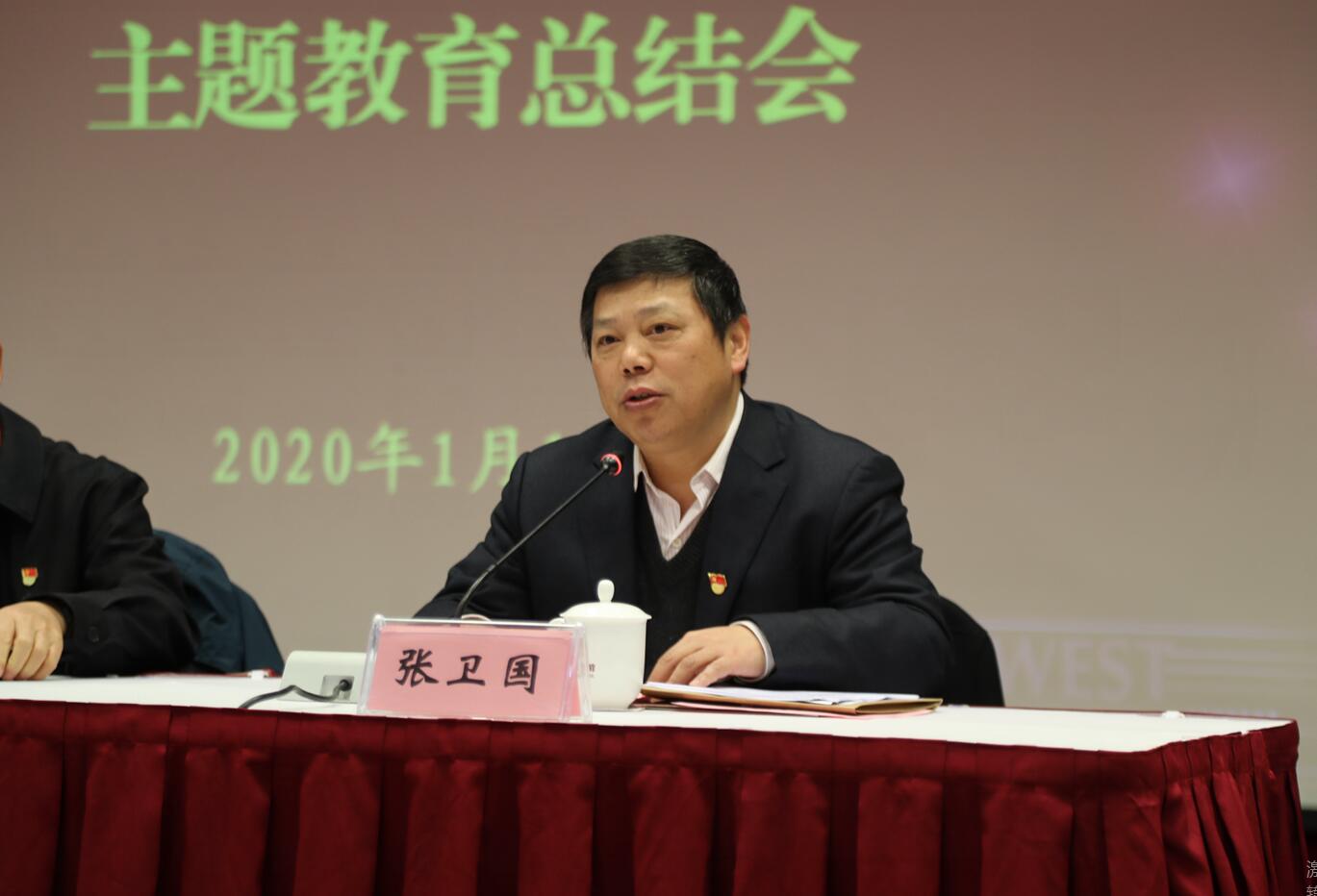校长、党委副书记张卫国在讲话中对第十巡回指导组的大力支持和精准指导表示由衷感谢,指出主题教育是新的起点,不忘初心方能行稳致远,牢记使命才能开创未来。围绕学校严格落实党中央决策部署和教育部党组要求,巩固深化主题教育成果,张卫国校长提出四点意见:一是抓好习近平总书记重要讲话精神的贯彻落实,筑牢“不忘初心、牢记使命”的思想根基;二是切实履行管党治党政治责任,把不忘初心、牢记使命作为加强党的建设的永恒课题和全体党员干部的终身课题常抓不懈;三是持续抓好整改落实,做好主题教育总结工作;四是巩固拓展主题教育成果,以实干实绩开创学校事业发展新局面。