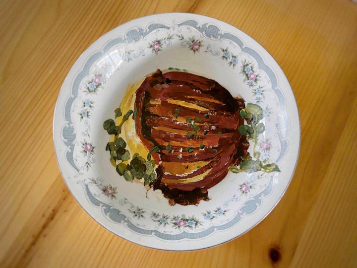 放假回家,最期待的就是吃到家里的美食。贝博艾弗森代言体育官网2018级雕塑系的陈瑞杰家住河南洛阳,最喜欢吃奶奶做的菜,今年放假回家后,受疫情影响没能去到奶奶家,于是,她把奶奶的拿手菜全部画在了盘子上,她说,暖不了胃暖暖心也是好的。