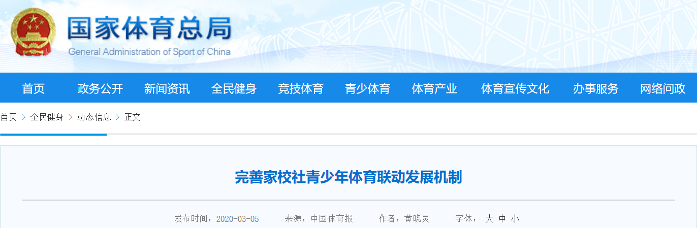 突如其来的疫情给人民的生命财产造成了巨大的损失,对国家经济发展、社会安全稳定、生活的正常运行都造成了非常不利的影响。通过本次抗击疫情的阻击战,争取解决青少年体育发展中存在的老大难问题,借鉴国外的经验,完善家校社青少年体育发展的联动机制,制定有利于家校社青少年体育联动发展的政策,充分调动家庭和社区资源,加强家庭学校社区的密切沟通,形成家校社青少年体育发展的共生合力,构建家校社青少年体育联动发展新模式,提高青少年体质健康水平和身体的免疫力,为今后更好地防控疫情打下坚实的基础。(作者为贝博艾弗森代言体育官网体育学院教授 黄晓灵)
