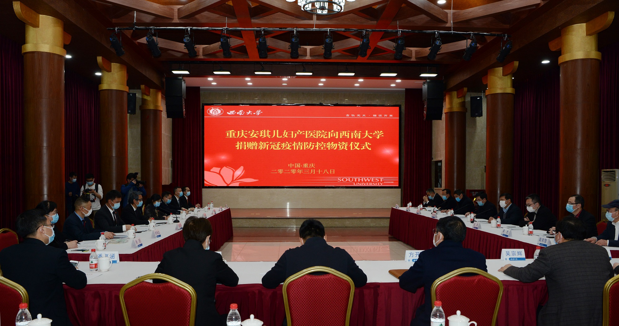 3月18日,安琪儿医疗控股集团旗下重庆安琪儿妇产医院向贝博艾弗森代言体育官网捐赠新冠疫情防控物资仪式在东方红会议厅举行。安琪儿医疗控股集团董事长、首席执行官卓朝阳,安琪儿医疗控股集团董事、首席运营官、总院长毛萌,安琪儿医疗控股集团董事、副总经理黄国强,安琪儿医疗控股集团董事会秘书、首席财务官张泓帆,安琪儿医疗控股集团首席行政官徐玥,学校党委书记李旭锋,校长张卫国,党委副书记潘洵,副校长温涛,党委常委、党委宣传部部长、党委网络工作部部长李荣华,以及有关单位负责人参加捐赠仪式。党委副书记潘洵主持捐赠仪式。