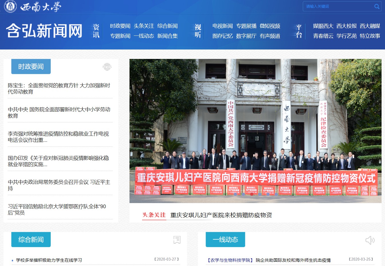学校党委高度重视新闻网的建设,要求新闻网围绕学校改革发展中心工作讲好西大故事、展示西大形象、传播西大声音,营造良好政治生态,把新闻网建成学校与广大师生、校友及社会各界沟通交流平台、学校对外宣传的重要媒介和窗口。为更好地做好新闻网的建设工作,党委宣传部、党委网络工作部精心设计建设方案,多次专题推敲论证,明确网站设计思路,反复修改设计方案;寒假期间,面对抗击新冠肺炎疫情,相关人员宅家时仍然在进行紧张的修正、美化、测试、上传工作,开学初已经基本完成网站建设;3月9日挂校园网进行校内试运行,广泛征求广大师生员工的意见,不断完善网站内容;现已根据收集到的反馈意见进行了栏目调整、内容扩充和页面设计修正,3月31日正式上线,以期更加多维度地全面反映学校加强党的全面领导、推进“双一流”建设、深化综合改革、建设美丽西大各项工作成就,更加多角度地综合反映广大师生新风貌,营造良好政治生态,助力学校特色鲜明的世界一流大学建设。