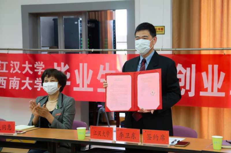 4月28日下午,借助网络会议平台,学校与江汉大学的毕业生就业创业工作“一帮一”行动协议签约仪式举行。学校党委副书记潘洵、江汉大学副校长李卫东出席会议,两校党政办、宣传部、教务处、研工部、招就处、创新创业学院等相关部门负责人参加会议。会议由江汉大学招生与就业指导处负责人主持。