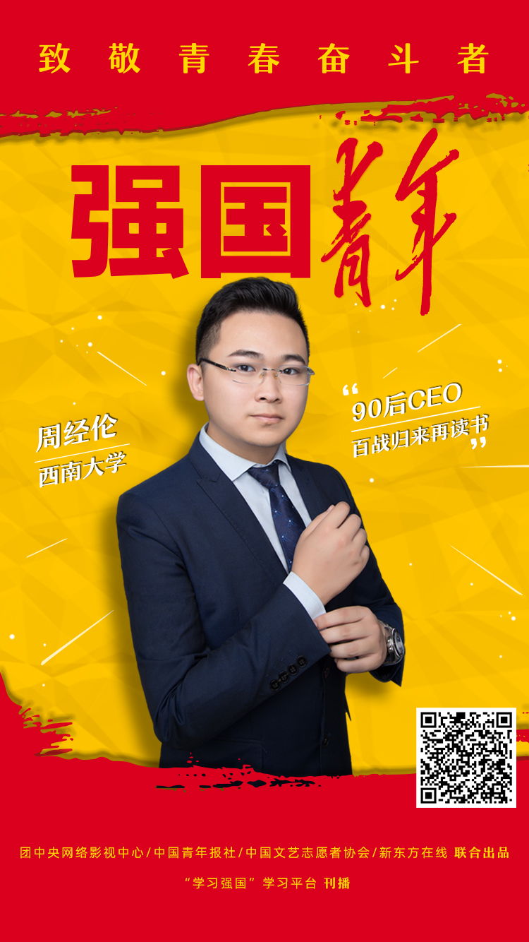 “一个有价值的人,不只是拥有多少,更应该是付出多少,没有责任担当,绝不是具有企业家精神的创业者!”经校团委指导推荐,学校抗疫青年志愿者、青马工程“香樟计划”第二期学员、青创中心副主席、沙鼠科技CEO、新闻传媒学院2017级本科生周经伦同学荣登《强国青年》榜样公开课,于6月10日在“学习强国”学习平台、中国青年报社全媒体矩阵、新东方在线等平台上线播出。