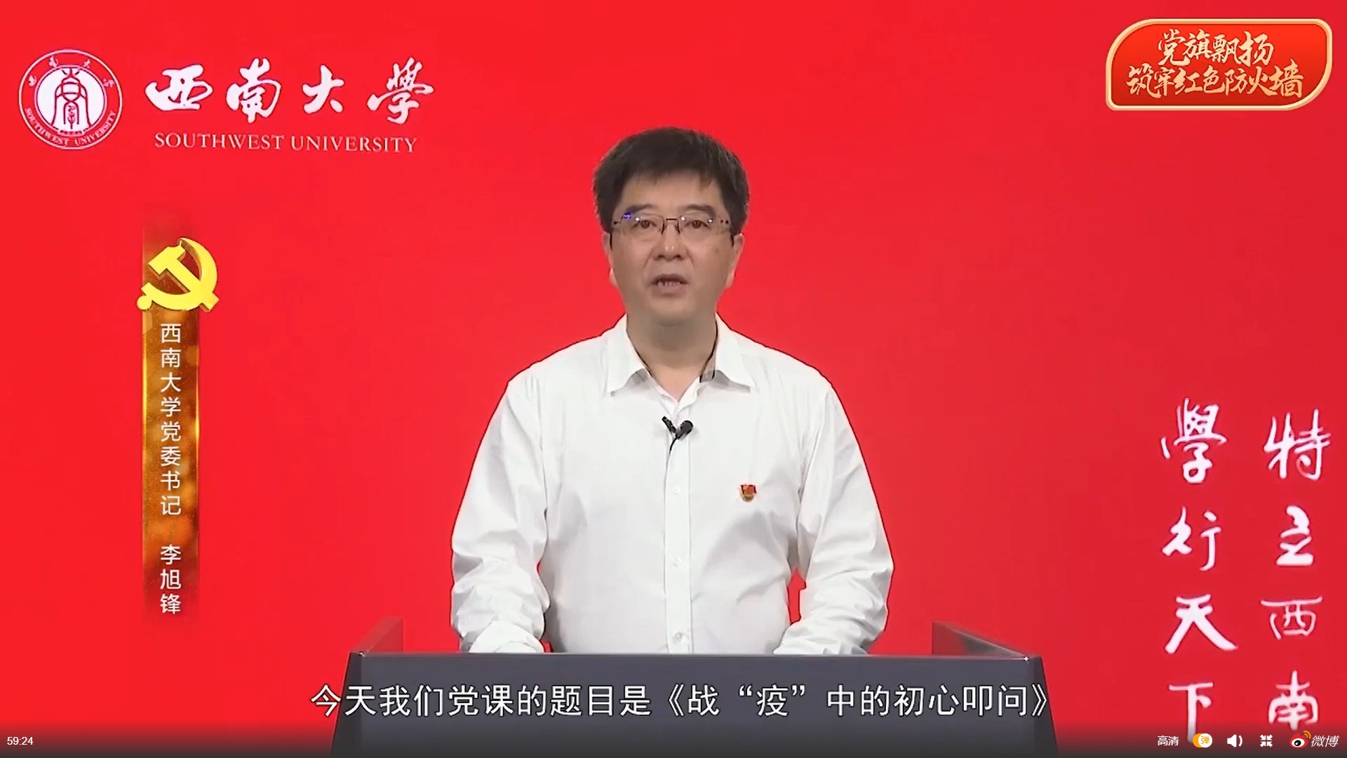 据悉,此次微党课是经教育部党组批准,在常态化疫情防控中加强高校基层党建“四个一”行动之一,是高校党组织战“疫”示范微党课第8讲,相继在共产党员网、教育部“微言教育”、高校思政网等平台实时推送直播预告,在光明网、新华网、教育部“微言教育”政务新媒体等众多平台同步播出。按照教育部党组要求,教育部直属高校和部省合建高校各级党组织围绕贯彻落实党中央关于常态化疫情防控决策部署,通过举办一堂专题微党课、召开一场特殊的组织生活会、打造一个教育素材库、构筑一道“红色防火墙”,引领带动全国高校全面加强基层党建工作,让党旗始终高高飘扬在疫情防控、返校复学、事业发展全过程全方位。