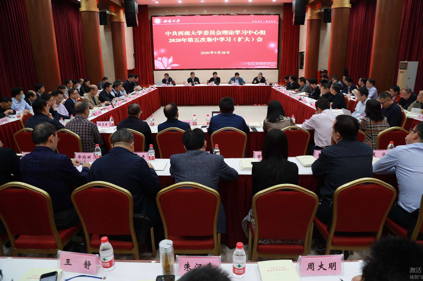 为进一步深入学习贯彻习近平总书记关于教育的重要论述精神,9月28日上午,学校在东方红会议厅召开2020年第五次党委理论学习中心组学习(扩大)会,学习传达习近平总书记教师节重要寄语精神、六所教育部直属师范院校座谈会精神,专题学习《习近平总书记教育重要论述讲义》和《思政课是落实立德树人根本任务的关键课程》。学校党委书记李旭锋主持会议,校领导、党委常委、党委委员、纪委委员、二级党组织书记以及相关单位主要负责人参会。