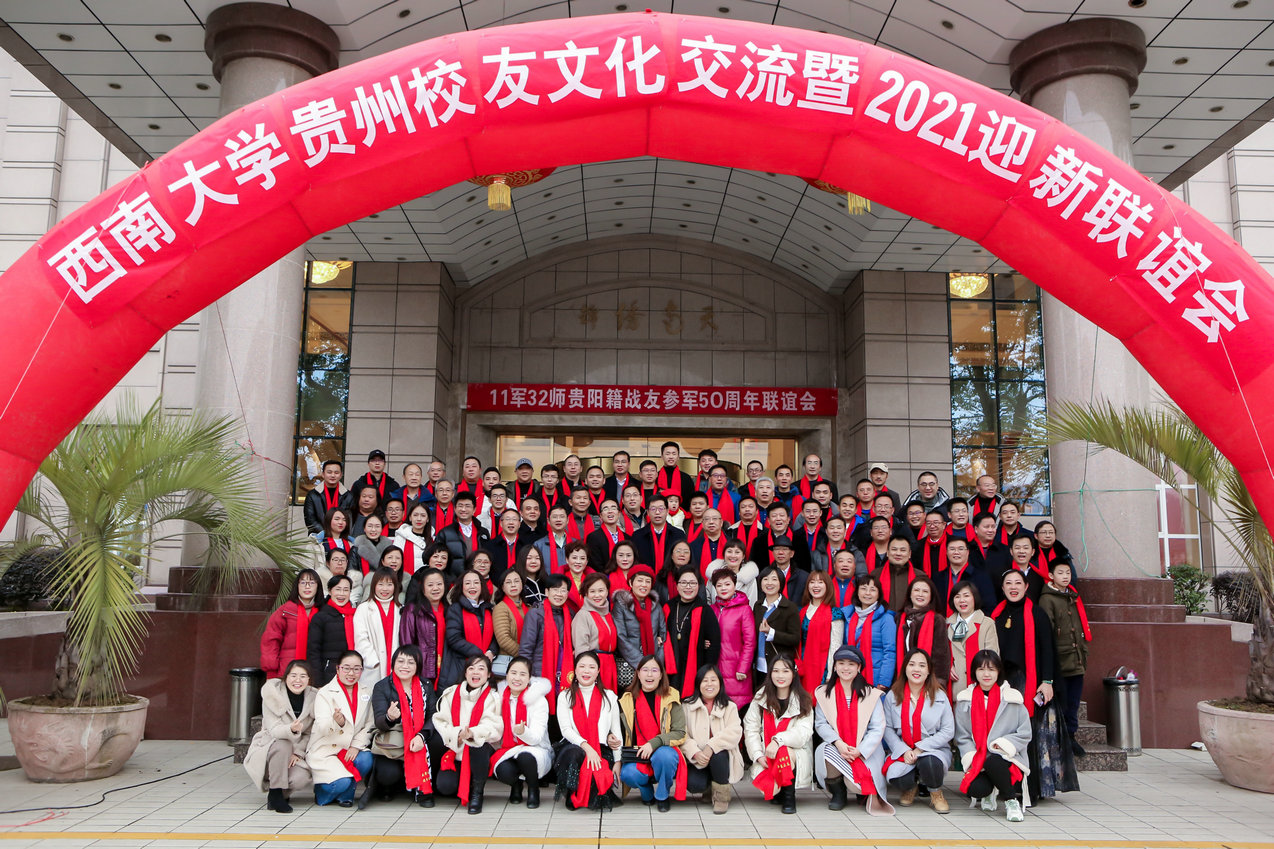 12月26日,贵州校友文化交流暨2021年迎新联谊会在贵阳市南天酒店举行。副校长赵国华,对外联络办公室、心理学部、资源环境学院相关负责人和专家出席大会,会议由1981级外国语学院校友邝吉等主持。