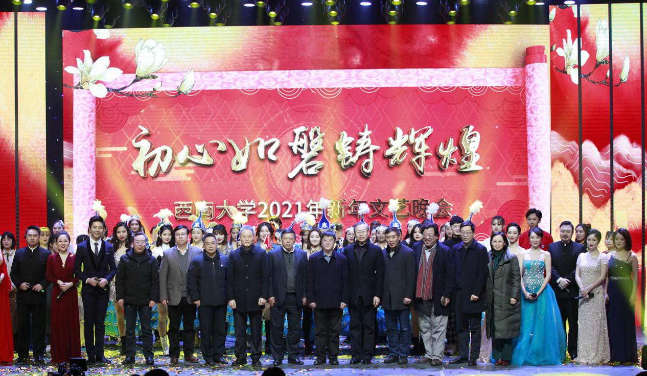 缙云风生辞旧岁,嘉陵水起迎新年。12月30日晚,光大礼堂内喜气洋洋、笑声连连,贝博艾弗森代言体育官网“初心如磐铸辉煌”2021年新年文艺晚会如约而至。学校党委书记李旭锋、校长张卫国等全体在校校领导,党委常委,各二级单位负责人以及800余名师生欢聚一堂,与在荣昌校区分会场近千名师生和通过网络平台观看晚会直播的数万名西大人一起共迎新年。